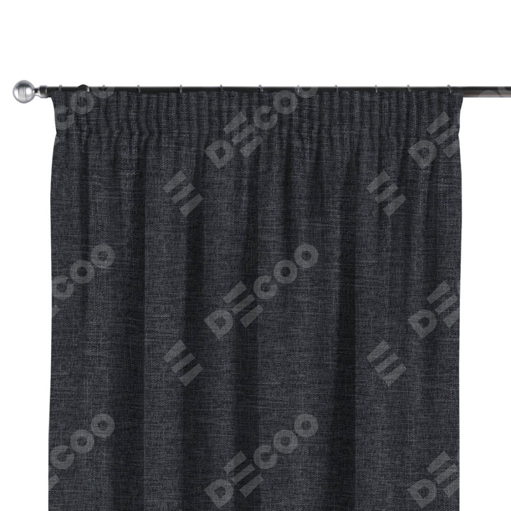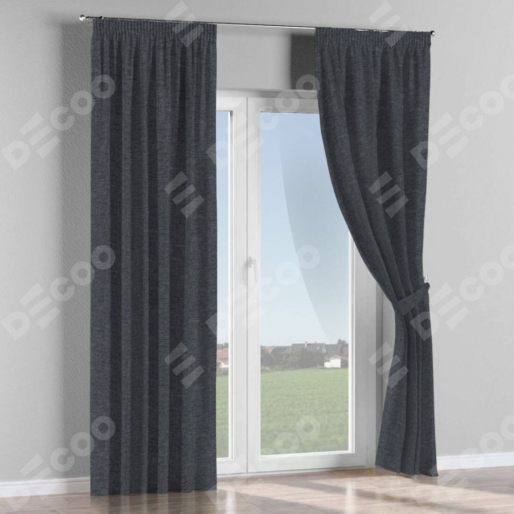 Комплект прямых штор, от производителя «Cortin», пошиты из ткани рогожка димаут графит, артикул ткани 90950. С изнаночной стороны в верхней части штор пристрачивается шторная лента с декоративными складками «Карандаш». Для создания элегантных складок прямые шторы шьются по стандарту с коэффициентом 1:2 (на 100 см. ширины проёма 200 см. ширины ткани).