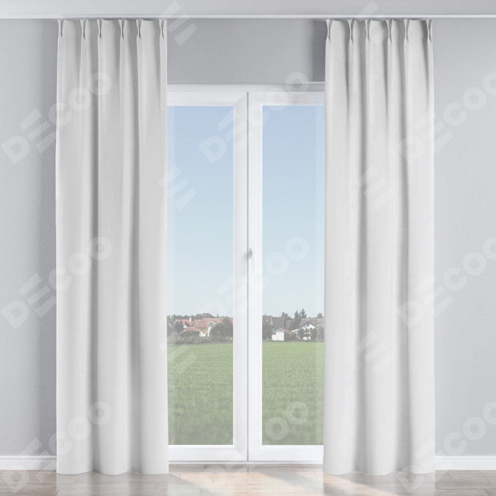 Комплект прямых штор, от производителя «Cortin», пошиты из ткани вельвет белоснежный, артикул ткани 92698. С изнаночной стороны в верхней части штор пристрачивается шторная лента с декоративными складками «Кустик». Для создания элегантных складок прямые шторы шьются по стандарту с коэффициентом 1:2 (на 100 см. ширины проёма 200 см. ширины ткани).