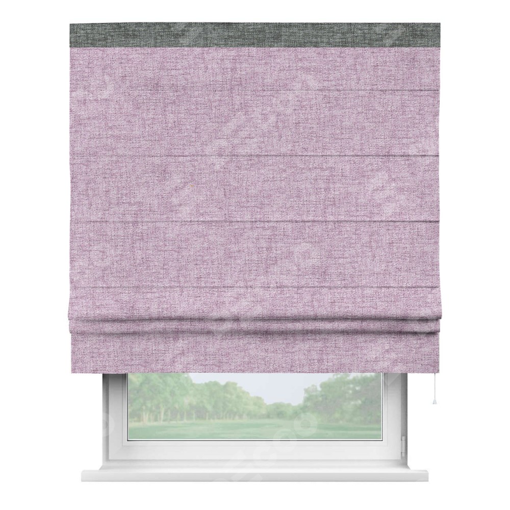 Римская штора пошита из ткани рогожка димаут розовый, артикул: 91031, с отделкой кантом «Кинг» отличается своей необычной особенностью: кант располагается исключительно сверху шторы. Такой дизайн делает акцент на верхней части окна, визуально поднимая потолок и придавая интерьеру более возвышенный и изысканный вид. Отделка кантом на верхней кромке не только украшает штору, но и может служить дополнительной защитой от износа в месте наибольшего контакта с механизмом управления шторой.