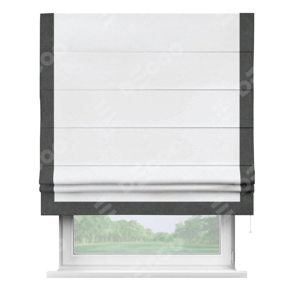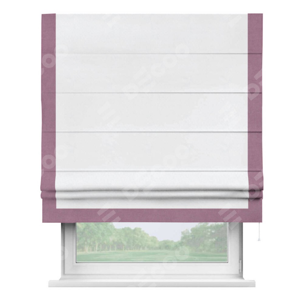 Римская штора с отделкой кантом «Виктория», пошита из ткани вельвет белоснежный, артикул: 92698. представляет собой элегантное решение для оконного оформления. Кант по бокам и снизу шторы добавляет изысканности и аккуратности внешнему виду, подчеркивая линии и форму шторы. Этот элемент декора не только украшает, но и выполняет практическую функцию, защищая края ткани от износа. Кант может быть выполнен в контрастном или гармонирующем цвете, что позволяет добиться различных стилевых эффектов и легко вписать штору в интерьер комнаты.