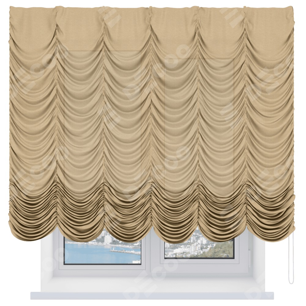 Французская штора производителя «Cortin», используется для проёма, пошита из ткани лён тёмно-бежевый, артикул ткани 53433. Имеет универсальный механизм и подходит для монтажа: на потолок и на стену.