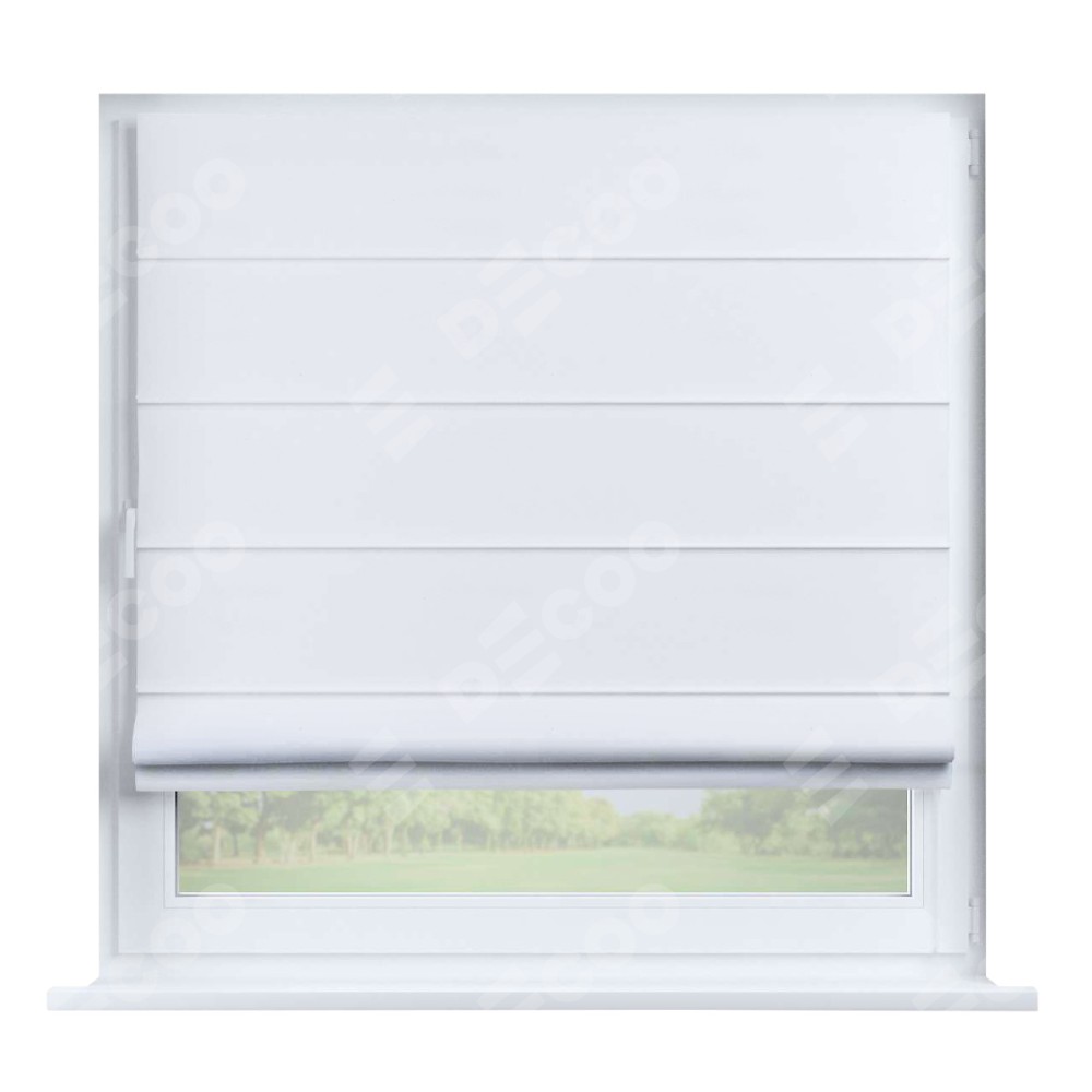 Римская штора производителя «Cortin», устанавливается на створку окна, пошита из ткани вайтаут однотонная белая, артикул 93935. Штора шьётся по индивидуальным размерам, для данного типа римской шторы возможная ширина от 35 до 150 см., высота до 250 см.