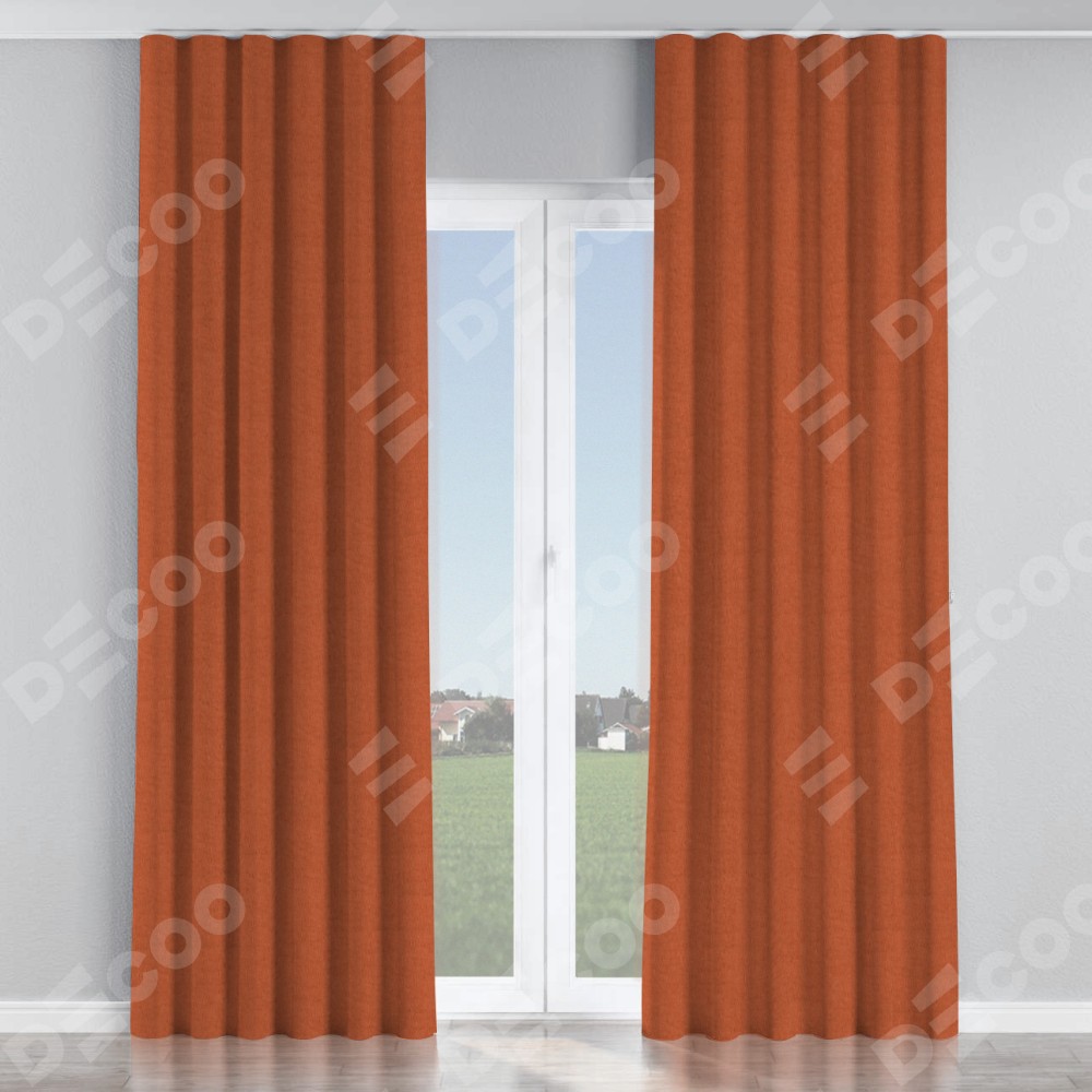 Комплект прямых штор, от производителя «Cortin», пошиты из ткани канвас терракотовый, артикул ткани v-107. С изнаночной стороны в верхней части штор пристрачивается шторная лента с декоративными складками «Волна». Для создания элегантных складок рекомендуемый коэффициент 1:2 (на 100 см. ширины проёма 200 см. ширины ткани). Важно! Ширина штор указана без учёта коэффициента сборки!