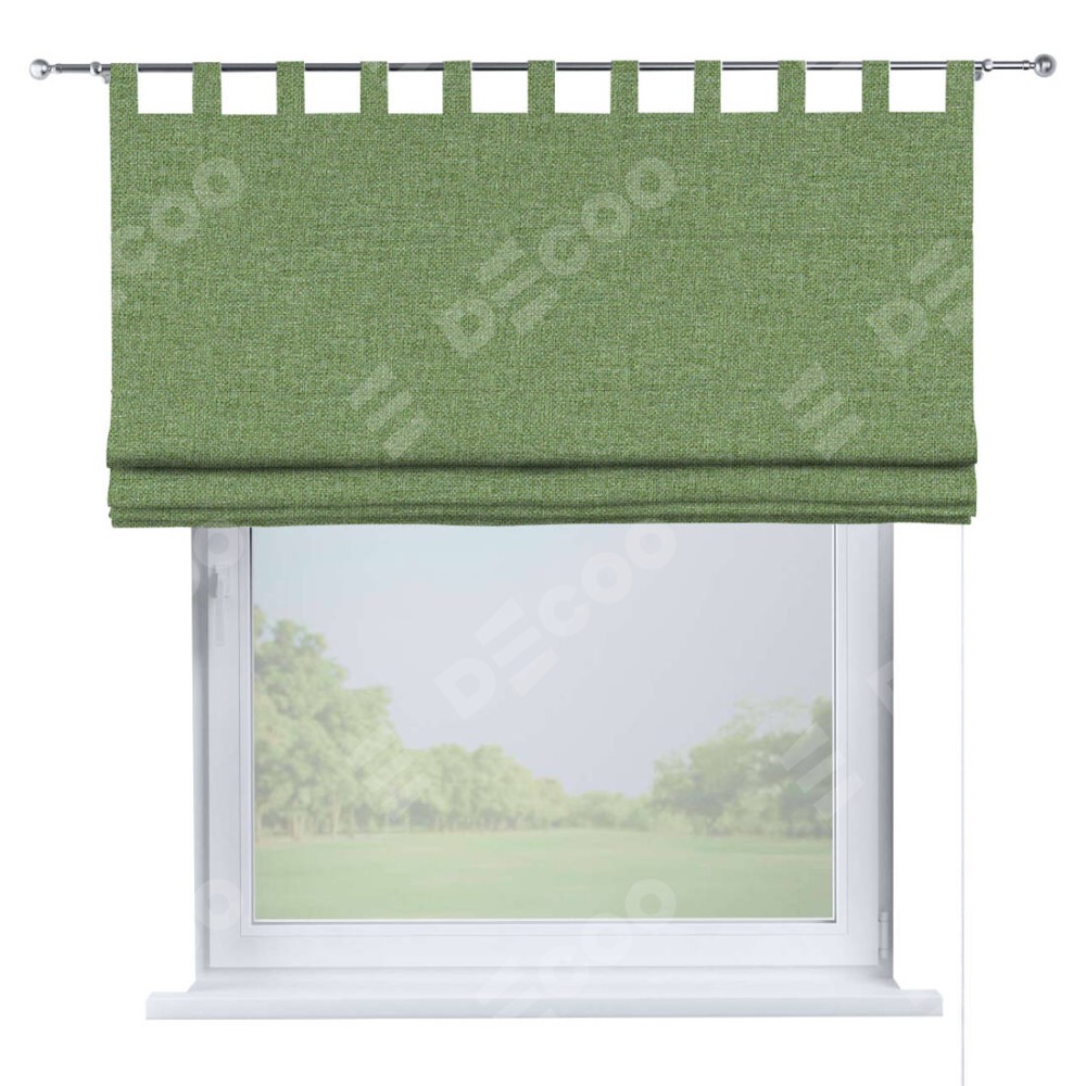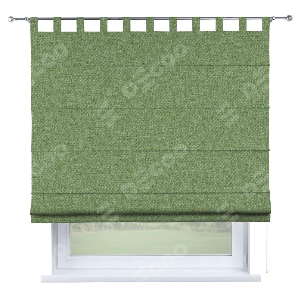Римская штора производителя «Cortin», используется для проёма, пошита из ткани лён димаут светло-салатовый, артикул ткани 128528. Данная модель пошита на петлях, комплектуется на выбор круглым карнизом и подходит для монтажа на стену. Римская штора на петлях имеет простую систему регулировки высоты, отличительным преимуществом данной модели является простой способ монтажа. Достаточно повесить ее на трубу и штора готова!