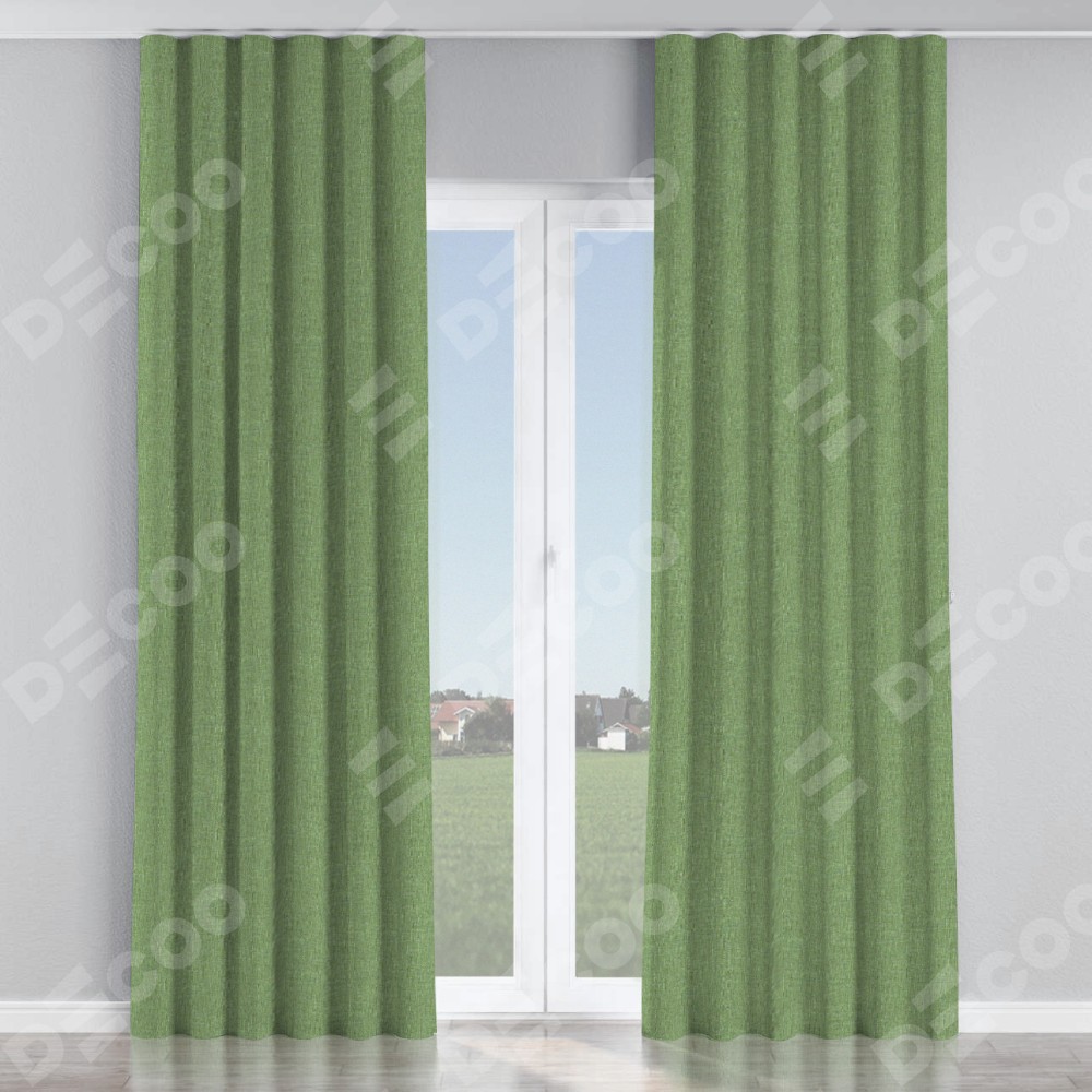 Комплект прямых штор, от производителя «Cortin», пошиты из ткани лён димаут светло-салатовый, артикул ткани 128528. С изнаночной стороны в верхней части штор пристрачивается шторная лента с декоративными складками «Волна». Для создания элегантных складок рекомендуемый коэффициент 1:2 (на 100 см. ширины проёма 200 см. ширины ткани). Важно! Ширина штор указана без учёта коэффициента сборки!