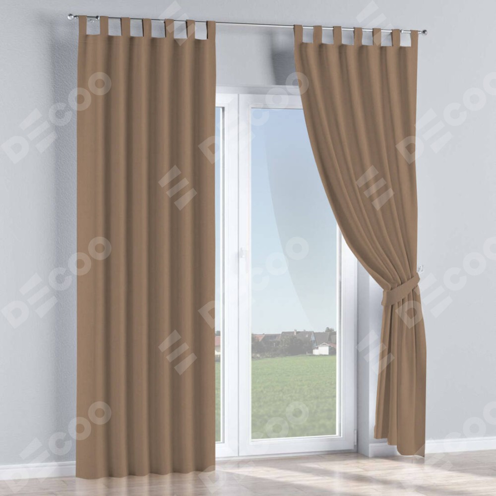 Комплект прямых штор, от производителя «Cortin», пошиты из ткани однотонный блэкаут кофейно-бежевый, артикул ткани 91566−2. Данная модель пошита на петлях, комплектуется на выбор круглым карнизом и подходит для монтажа на стену или потолок. Для создания элегантных складок рекомендуемый коэффициент 1:2 (на 100 см. ширины проёма 200 см. ширины ткани). Важно! Ширина штор указана без учёта коэффициента сборки!
