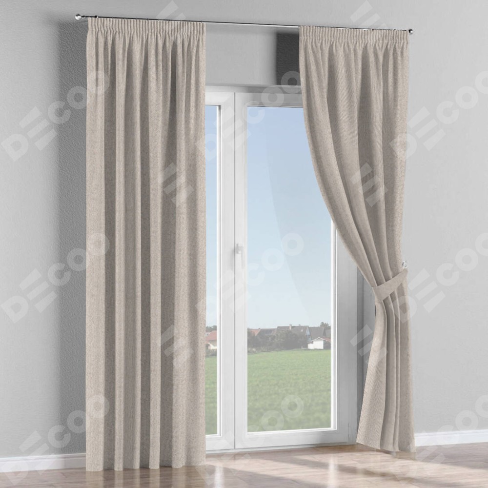 Комплект прямых штор, от производителя «Cortin», пошиты из ткани лён димаут бежевый, артикул ткани 01. С изнаночной стороны в верхней части штор пристрачивается шторная лента с декоративными складками «Карандаш». Для создания элегантных складок рекомендуемый коэффициент 1:2 (на 100 см. ширины проёма 200 см. ширины ткани). Важно! Ширина штор указана без учёта коэффициента сборки!