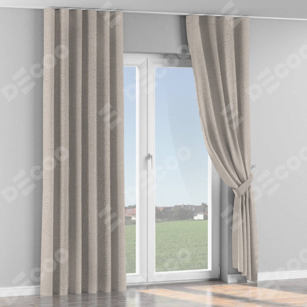 Комплект прямых штор, от производителя «Cortin», пошиты из ткани лён димаут бежевый, артикул ткани 01. С изнаночной стороны в верхней части штор пристрачивается шторная лента с декоративными складками «Волна». Для создания элегантных складок рекомендуемый коэффициент 1:2 (на 100 см. ширины проёма 200 см. ширины ткани). Важно! Ширина штор указана без учёта коэффициента сборки!