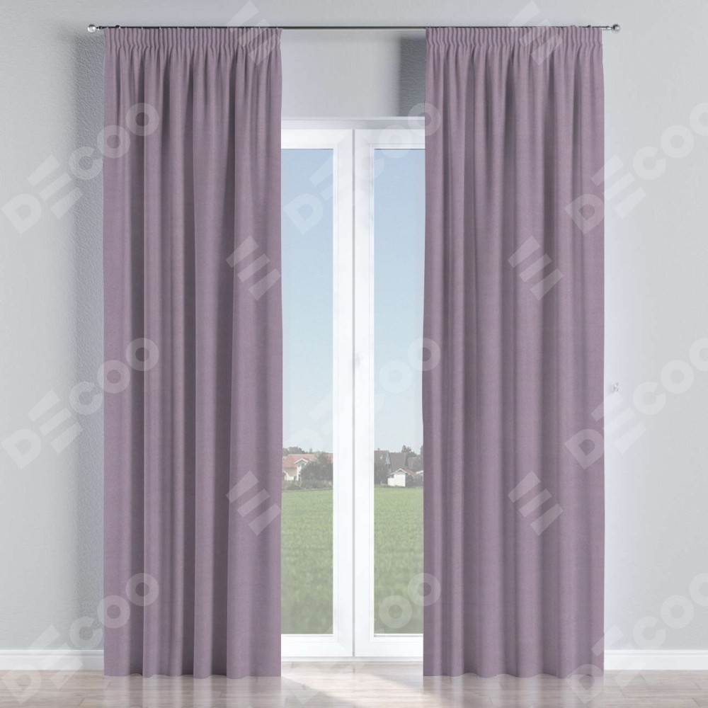 Комплект прямых штор, от производителя «Cortin», пошиты из ткани однотонный блэкаут лиловый, артикул ткани 91577. С изнаночной стороны в верхней части штор пристрачивается шторная лента с декоративными складками «Карандаш». Для создания элегантных складок рекомендуемый коэффициент 1:2 (на 100 см. ширины проёма 200 см. ширины ткани). Важно! Ширина штор указана без учёта коэффициента сборки!