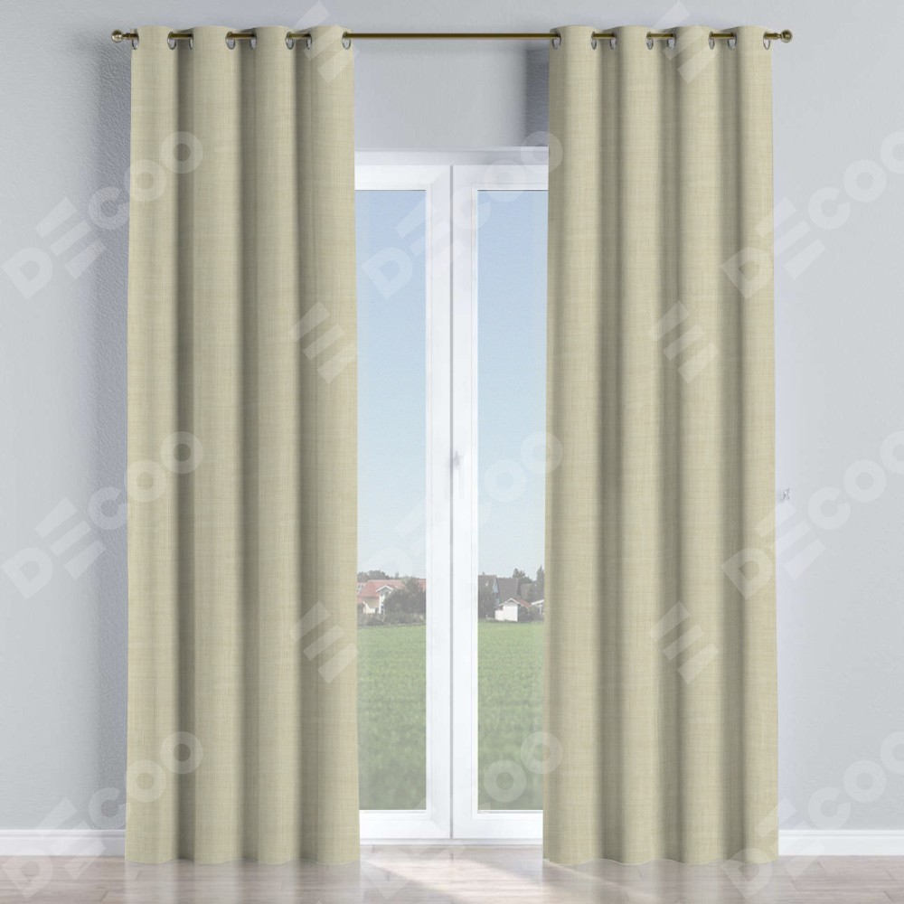 Комплект прямых штор, от производителя «Cortin», пошиты из ткани лён топлёное молоко, артикул ткани 104484. Данная модель пошита на люверсах, комплектуется на выбор круглым карнизом и подходит для монтажа на стену или потолок. Для создания элегантных складок рекомендуемый коэффициент 1:2 (на 100 см. ширины проёма 200 см. ширины ткани). Важно! Ширина штор указана без учёта коэффициента сборки!