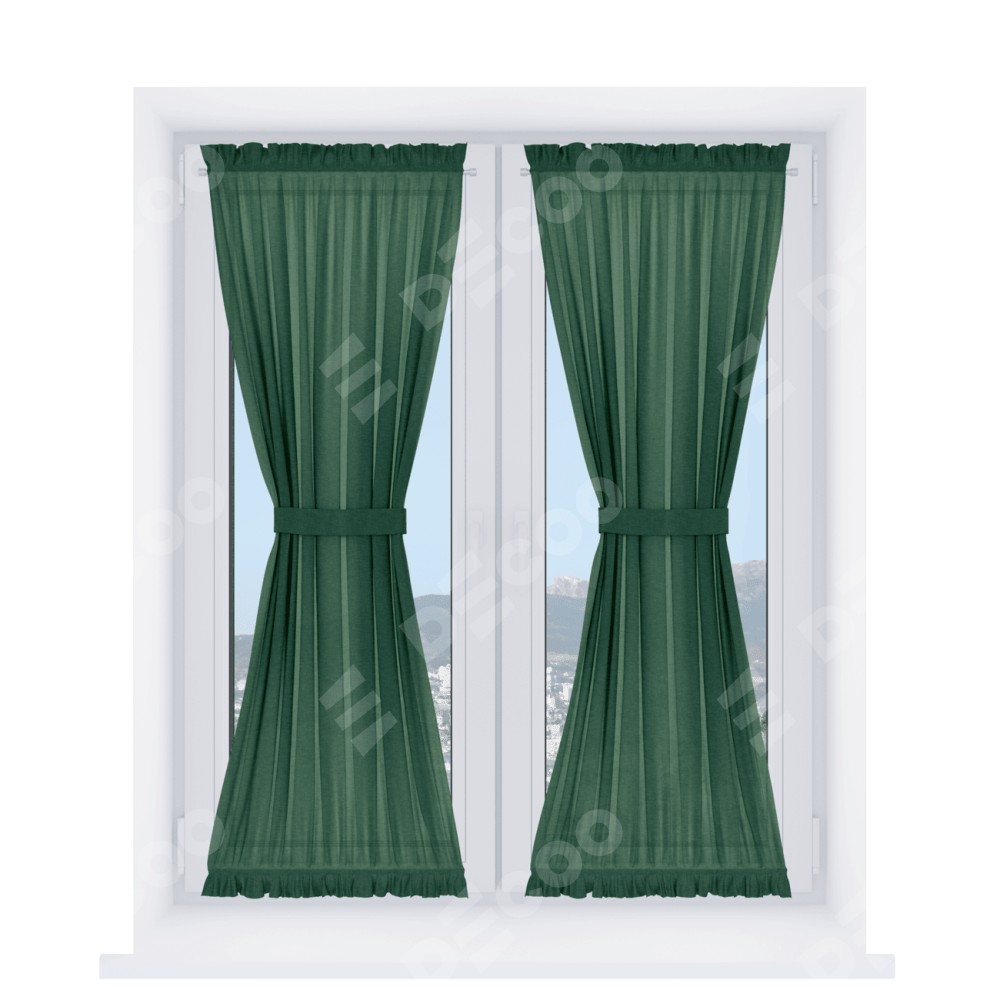 Штора «Песочные часы» производителя «Cortin», используется для створок окон и дверей, пошита из ткани лён серо-зелёный, артикул ткани 63740.