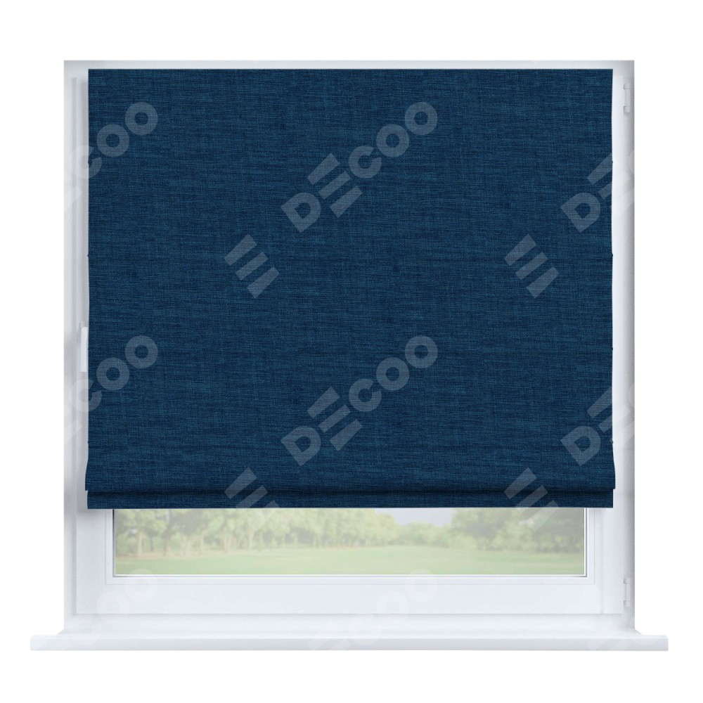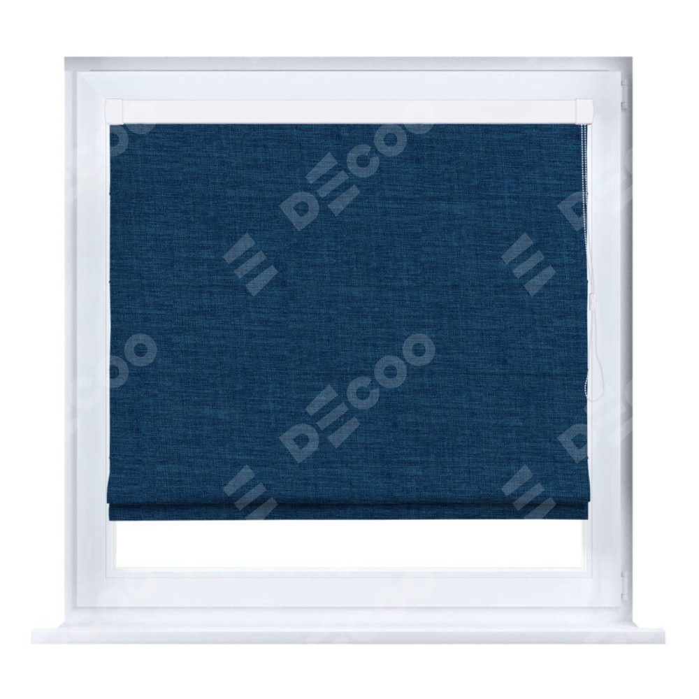 Римская штора производителя «Cortin», устанавливается на створку окна, пошита из ткани лён синий, артикул 104496. Штора шьётся по индивидуальным размерам, для данного типа римской шторы возможная ширина от 35 до 150 см., высота до 250 см.