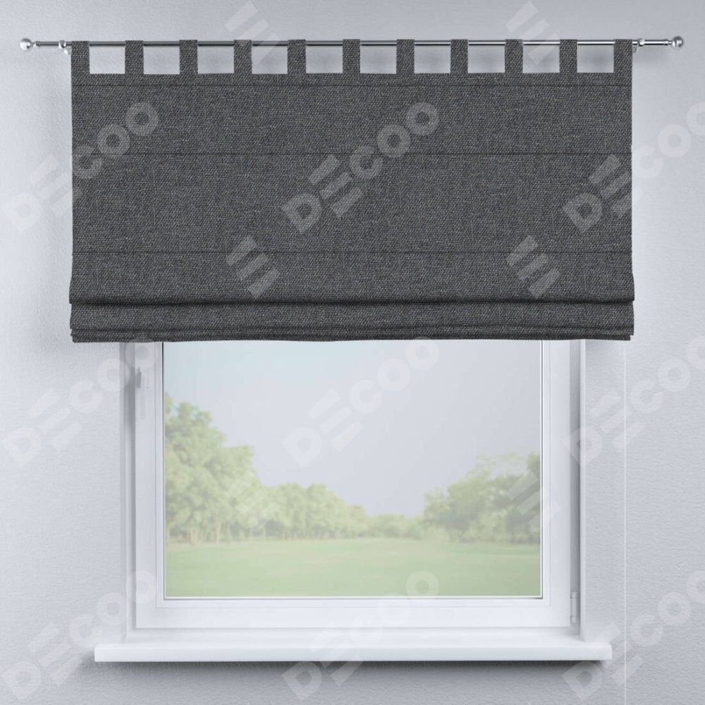 Римская штора производителя «Cortin», используется для проёма, пошита из ткани лён димаут графит, артикул ткани 140644. Данная модель пошита на петлях, комплектуется на выбор круглым карнизом и подходит для монтажа на стену. Римская штора на петлях имеет простую систему регулировки высоты, отличительным преимуществом данной модели является простой способ монтажа. Достаточно повесить ее на трубу и штора готова!