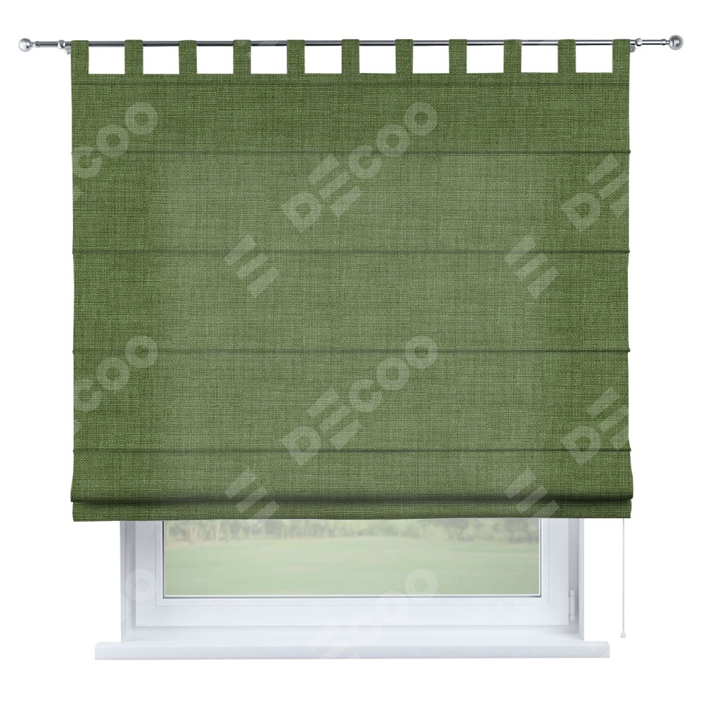 Римская штора производителя «Cortin», используется для проёма, пошита из ткани лён зелёный, артикул ткани 131547. Данная модель пошита на петлях, комплектуется на выбор круглым карнизом и подходит для монтажа на стену. Римская штора на петлях имеет простую систему регулировки высоты, отличительным преимуществом данной модели является простой способ монтажа. Достаточно повесить ее на трубу и штора готова!