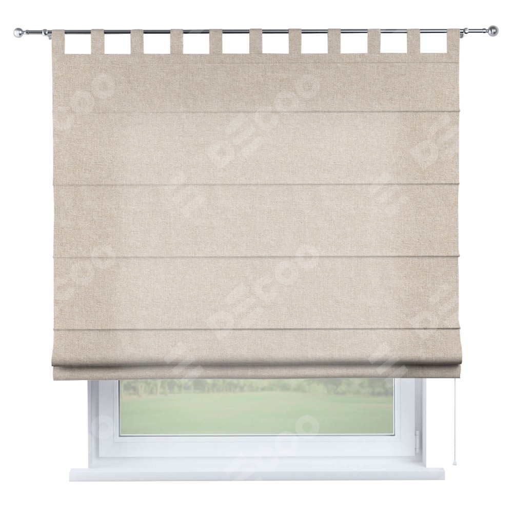 Римская штора производителя «Cortin», используется для проёма, пошита из ткани лён кашемир натуральный беж. Данная модель пошита на петлях, комплектуется на выбор круглым карнизом и подходит для монтажа на стену. Римская штора на петлях имеет простую систему регулировки высоты, отличительным преимуществом данной модели является простой способ монтажа. Достаточно повесить ее на трубу и штора готова!