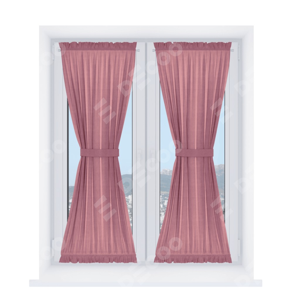 Штора «Песочные часы» производителя «Cortin», используется для створок окон и дверей, пошита из ткани вельвет брусника, артикул ткани 85550.