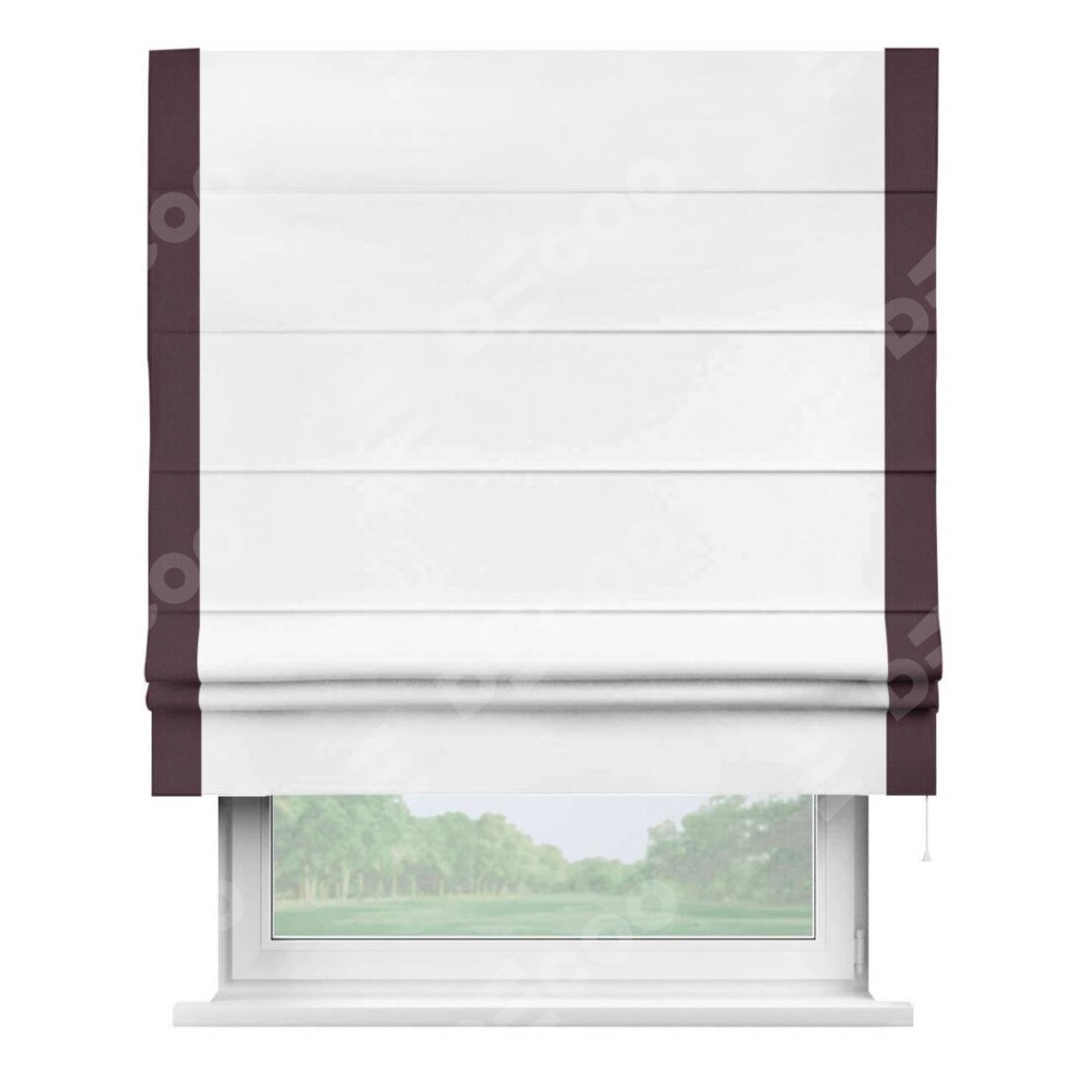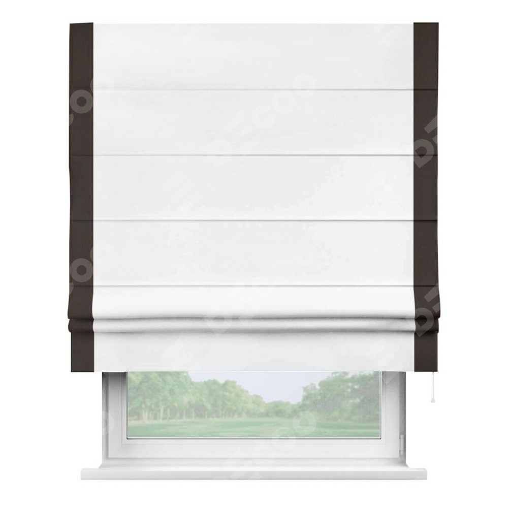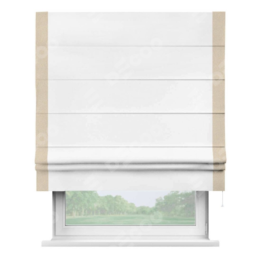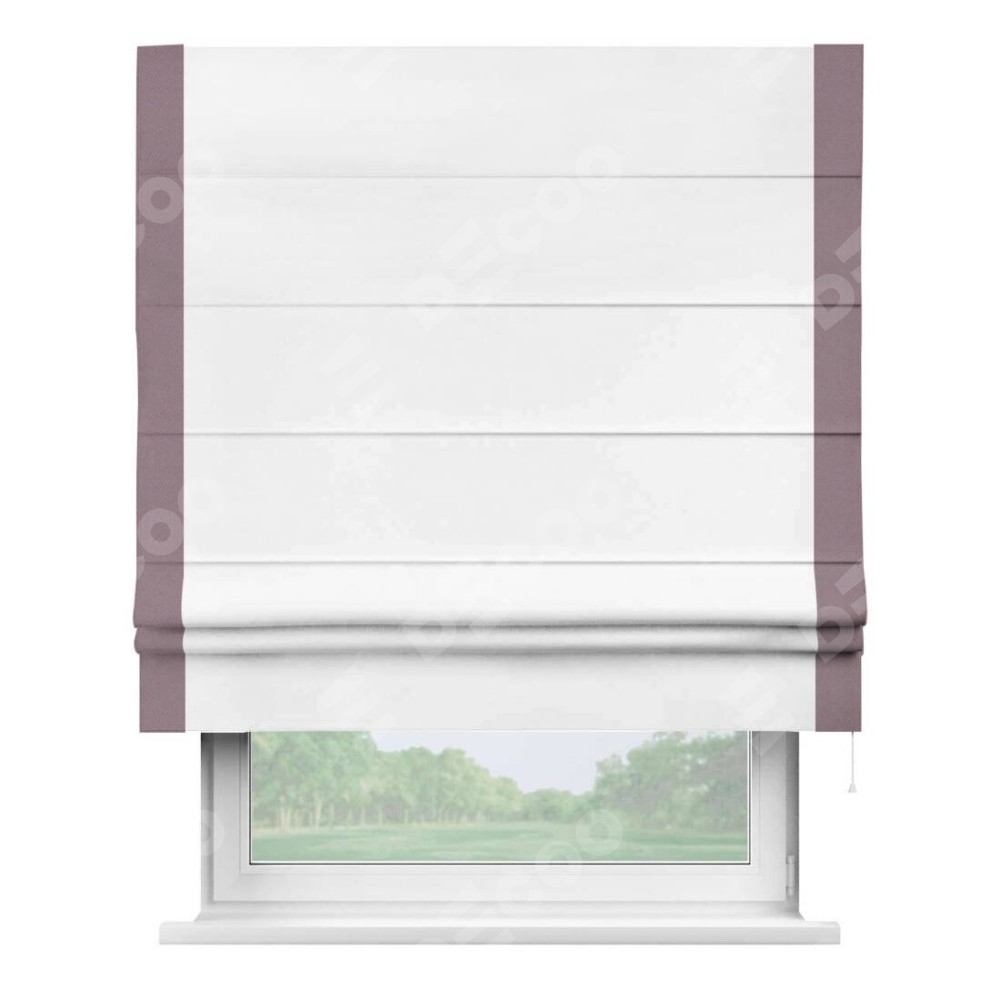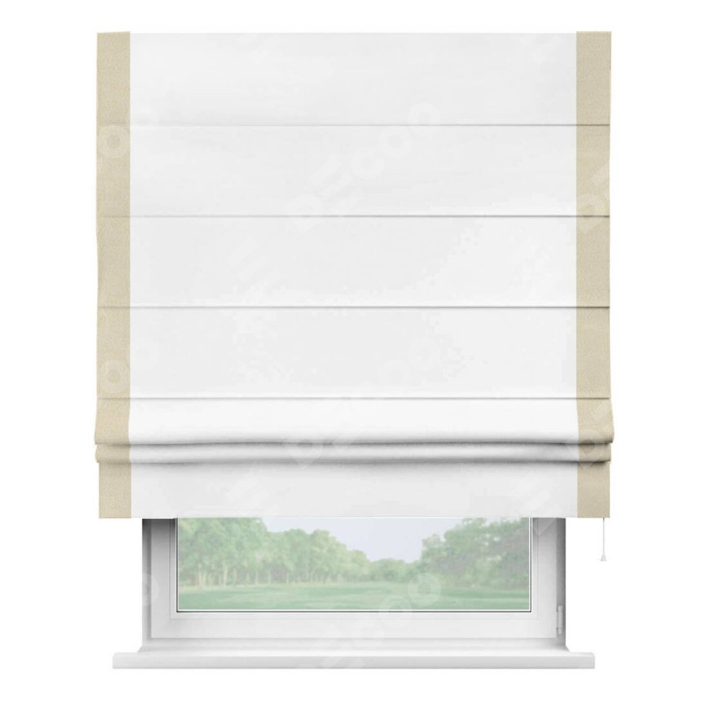 Римская штора «Кортин» для проёма, вайтаут однотонная белая с кантом Стрим Дуо