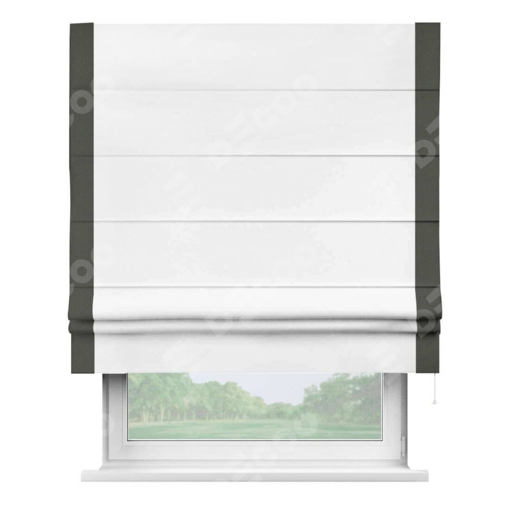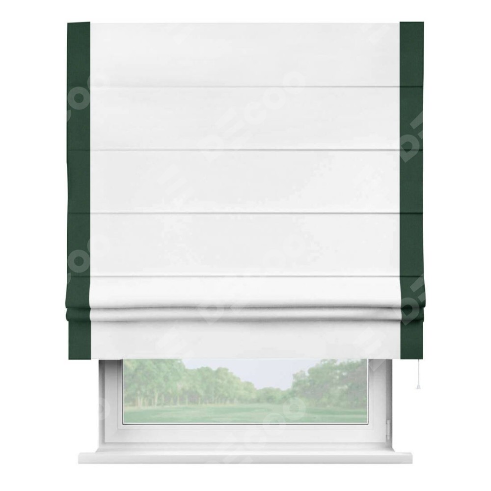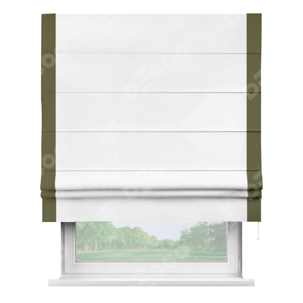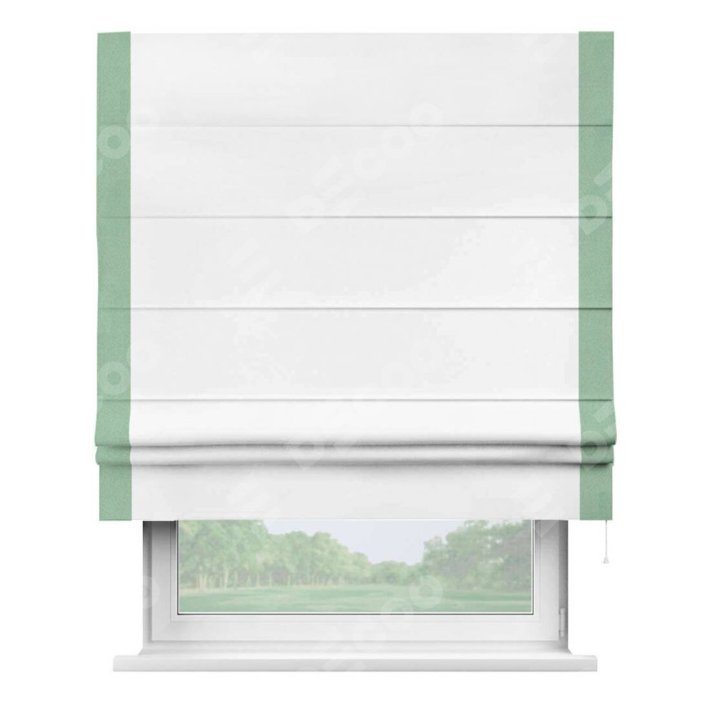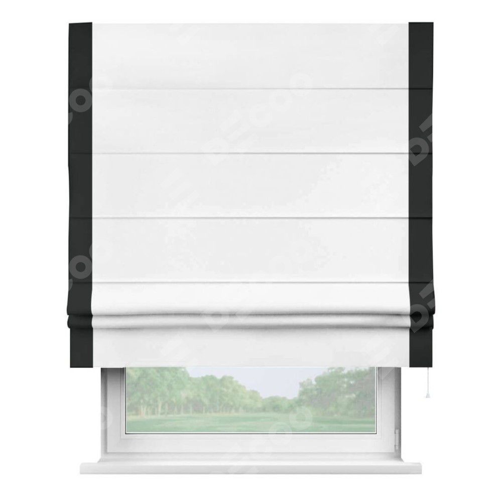 Римская штора «Кортин» для проёма, вайтаут однотонная белая с кантом Стрим Дуо