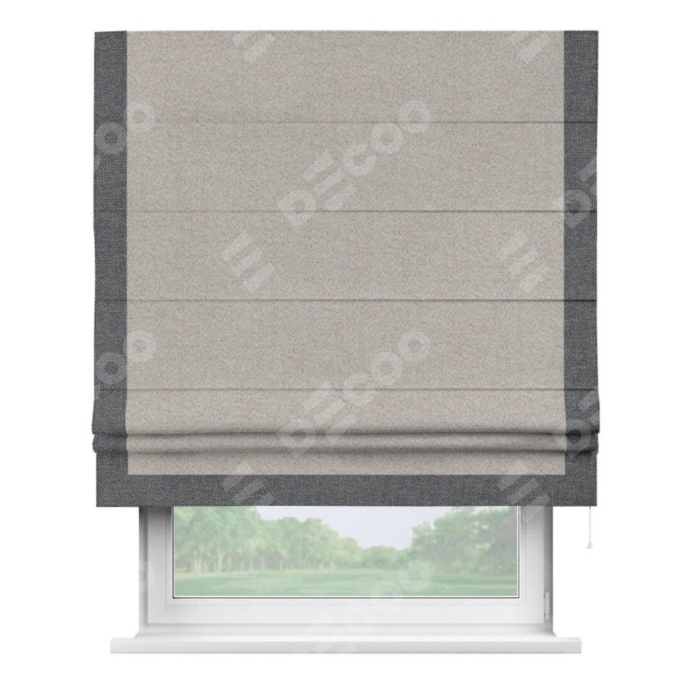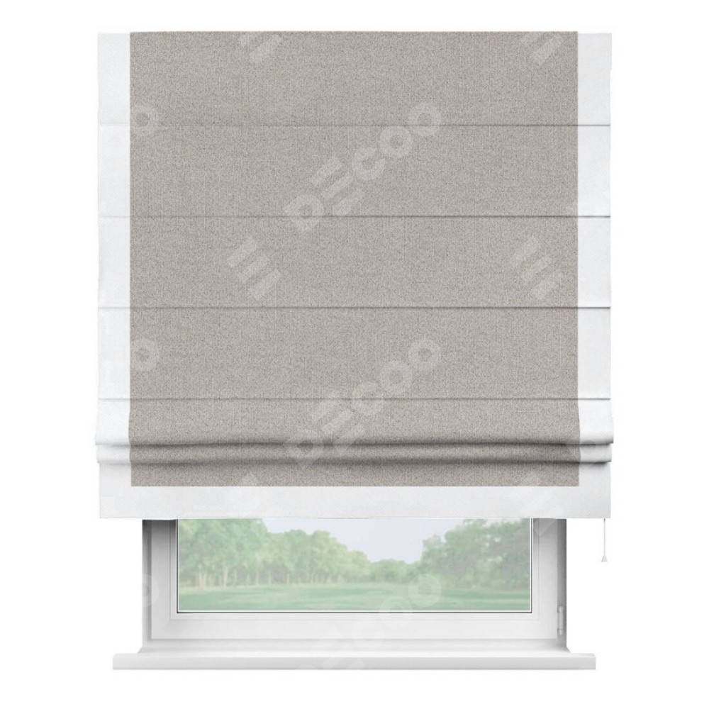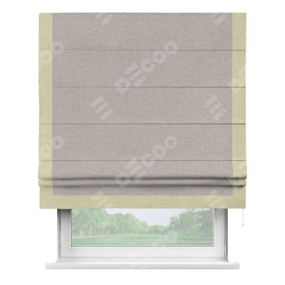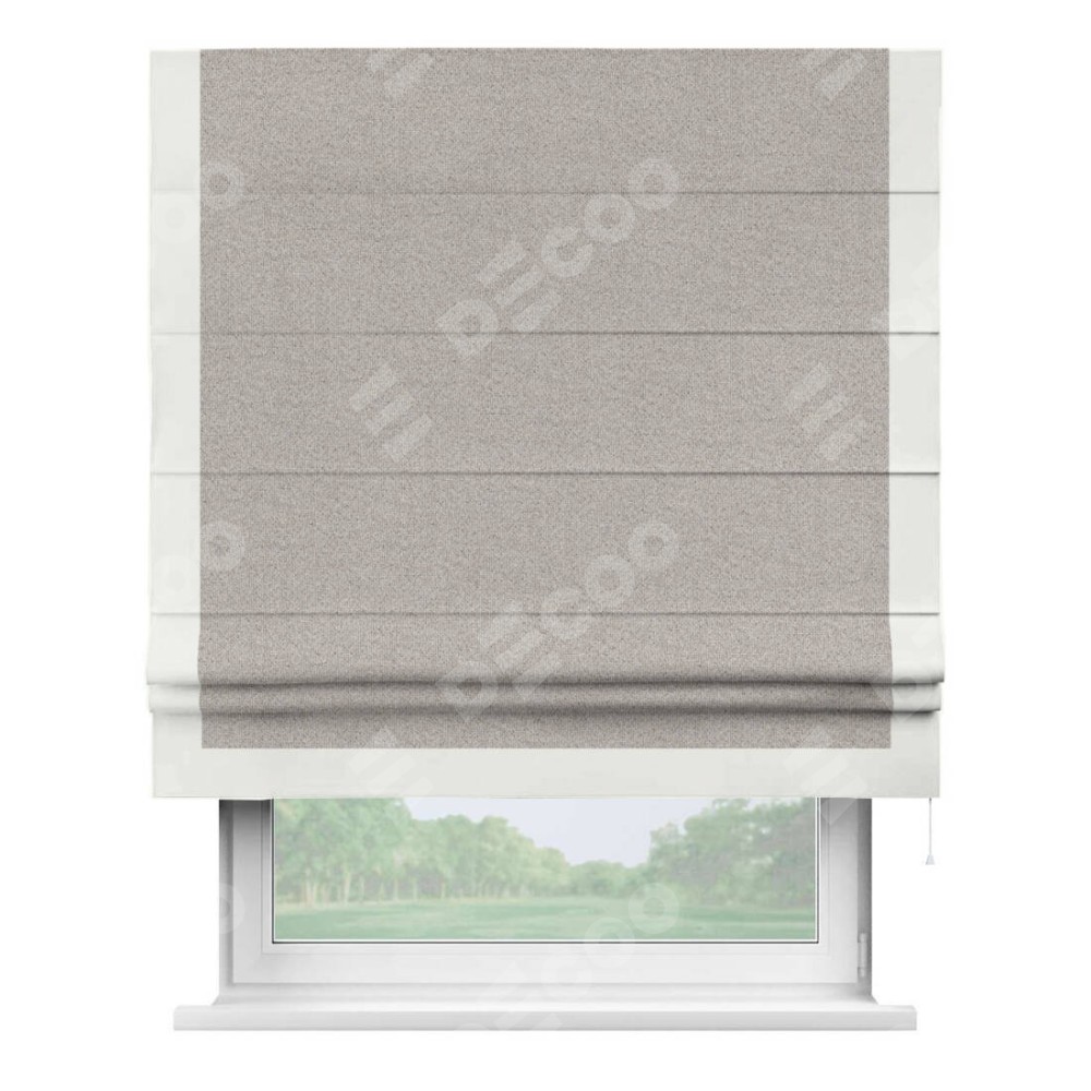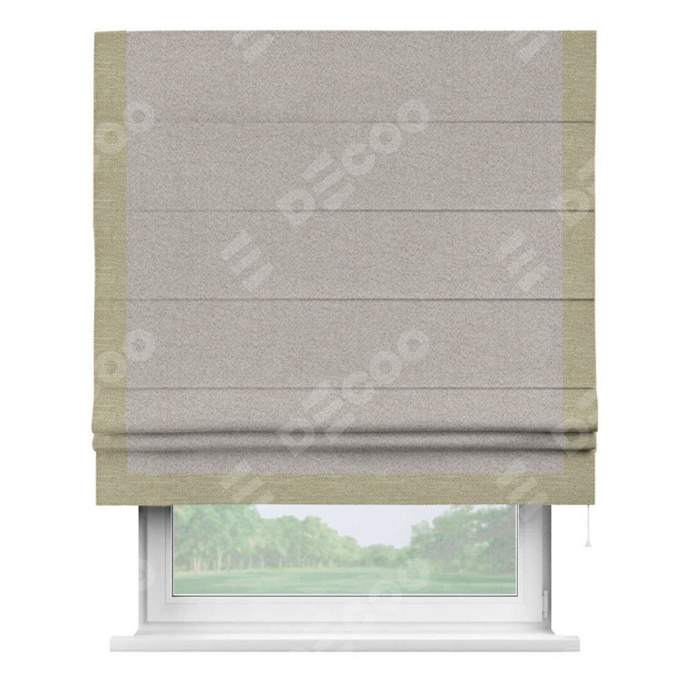 Римская штора «Кортин» для проема, лён димаут серо-бежевый с кантом Виктория