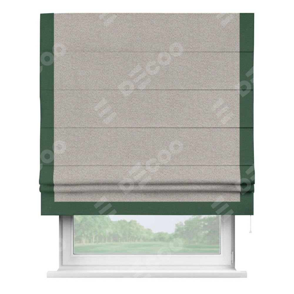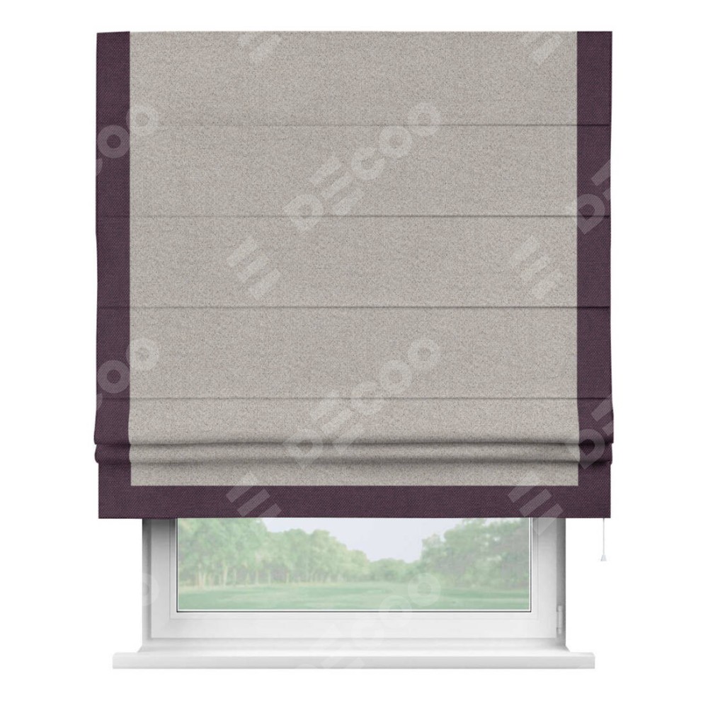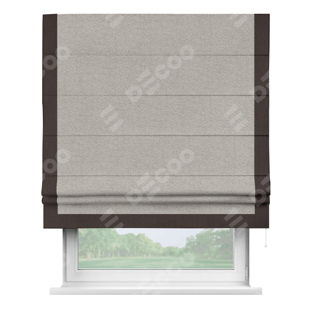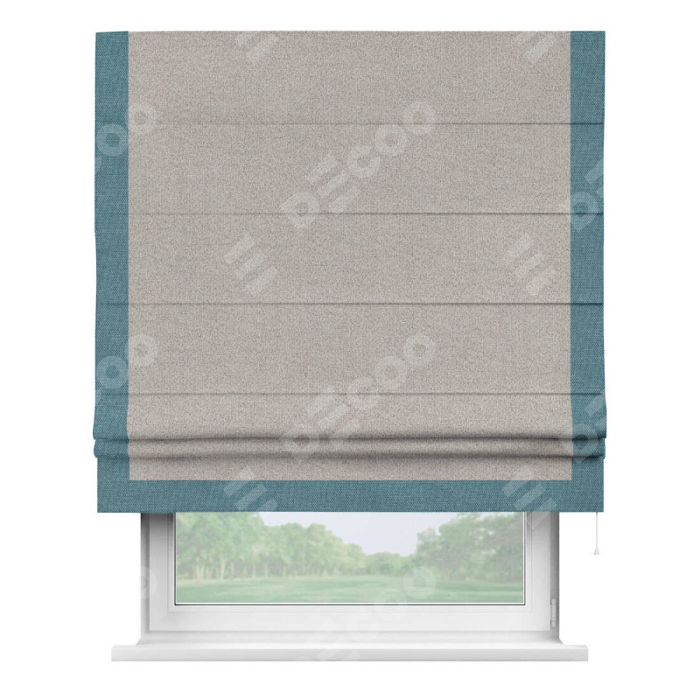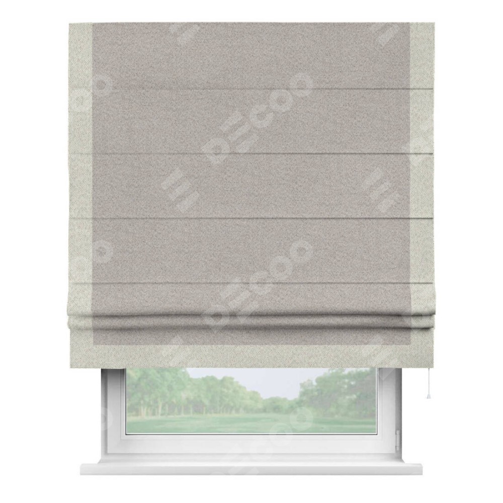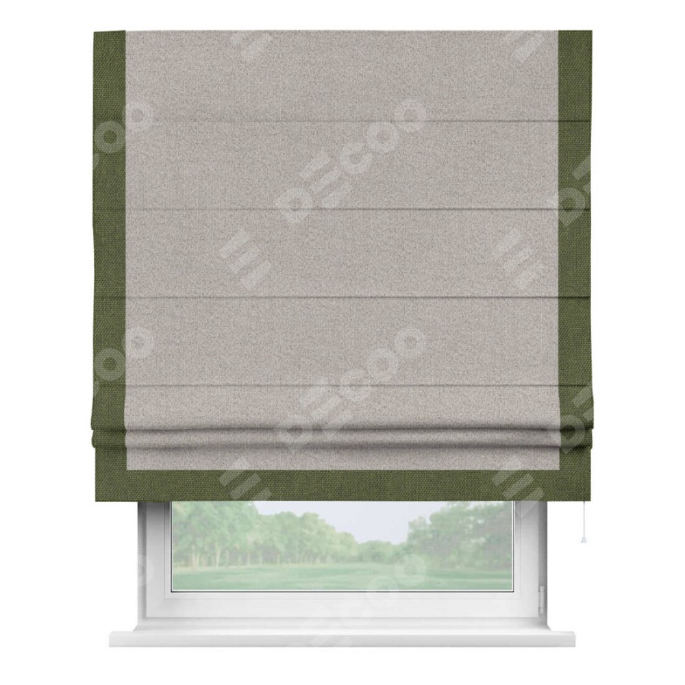 Римская штора «Кортин» для проема, лён димаут серо-бежевый с кантом Виктория