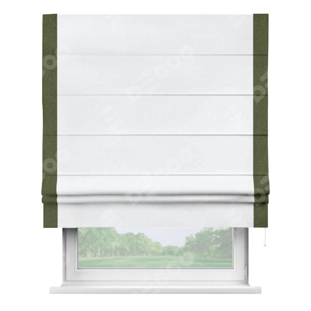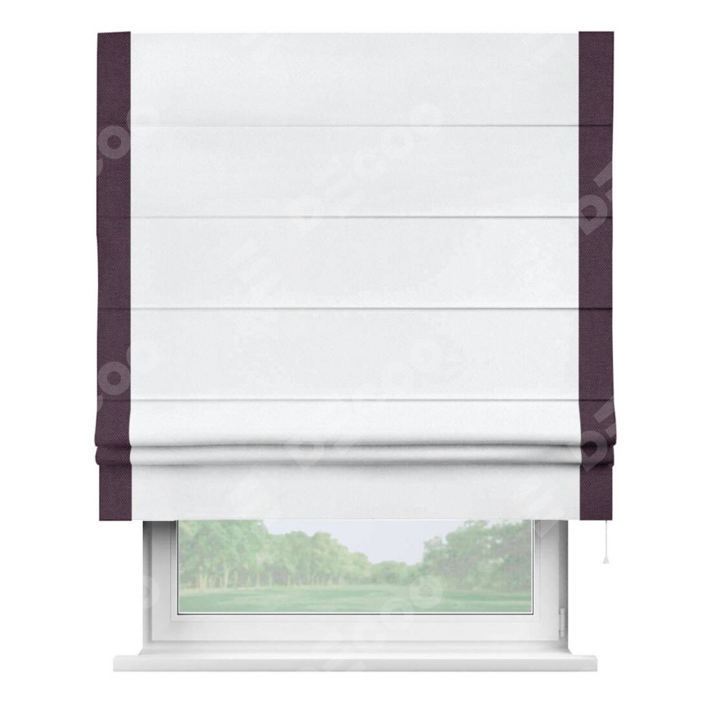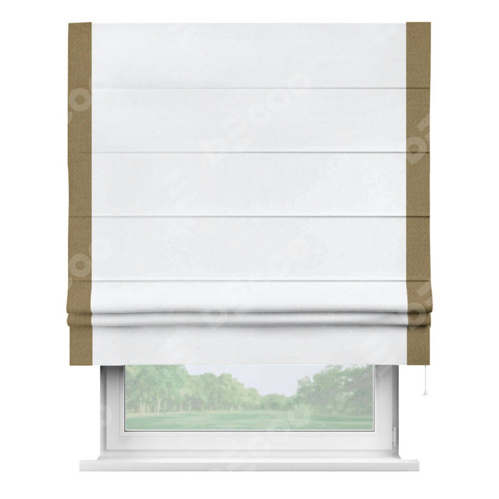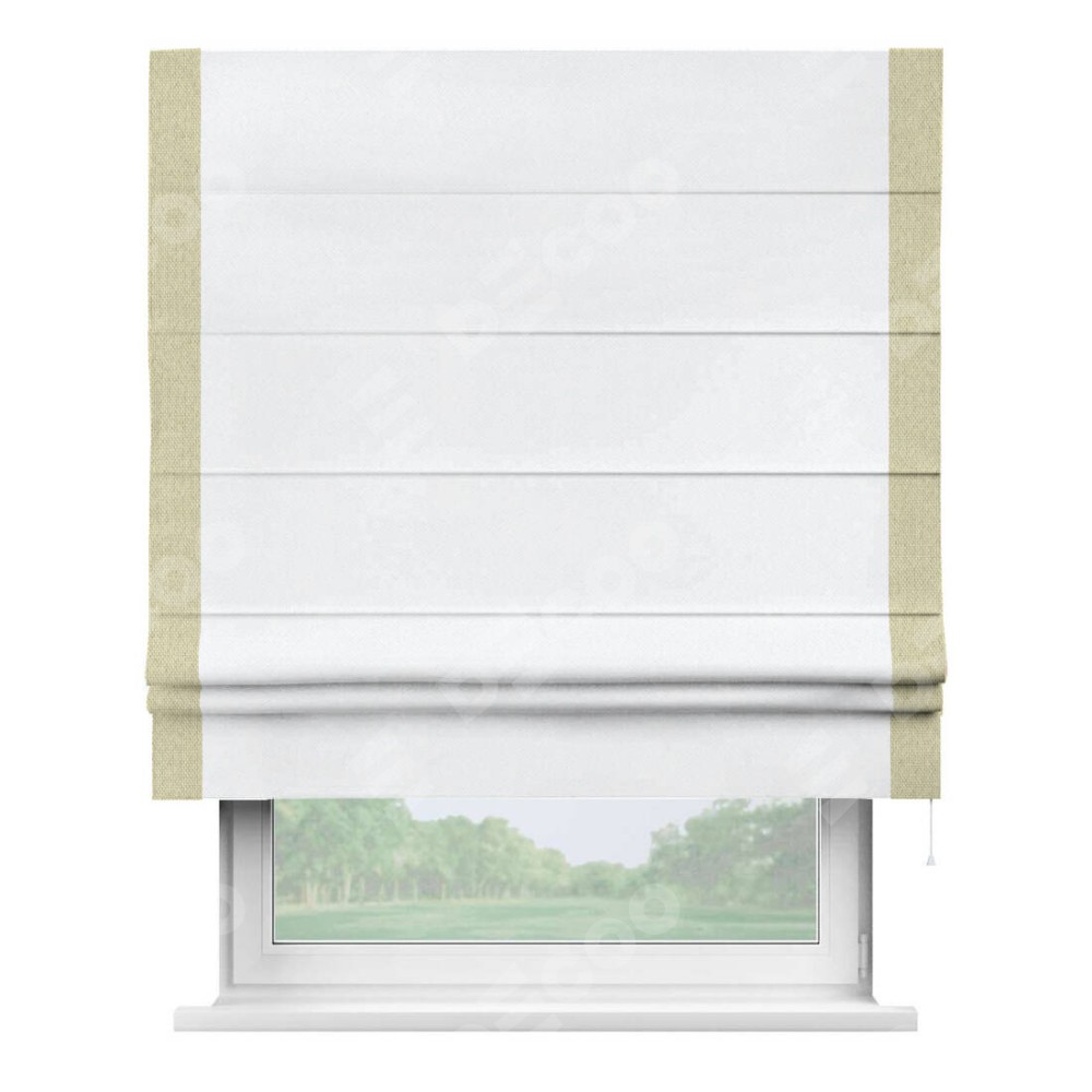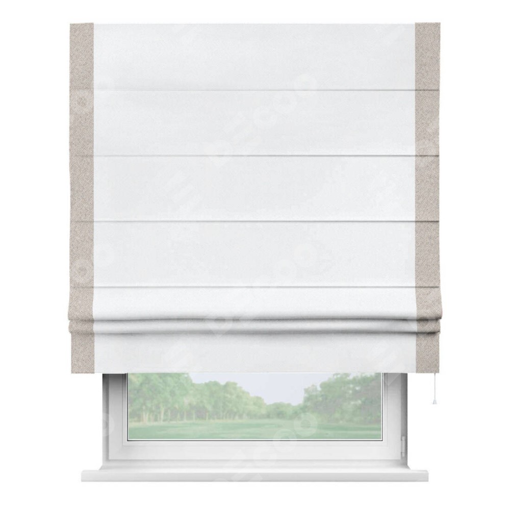Римская штора «Кортин» для проема, лён димаут белый с кантом Стрим Дуо