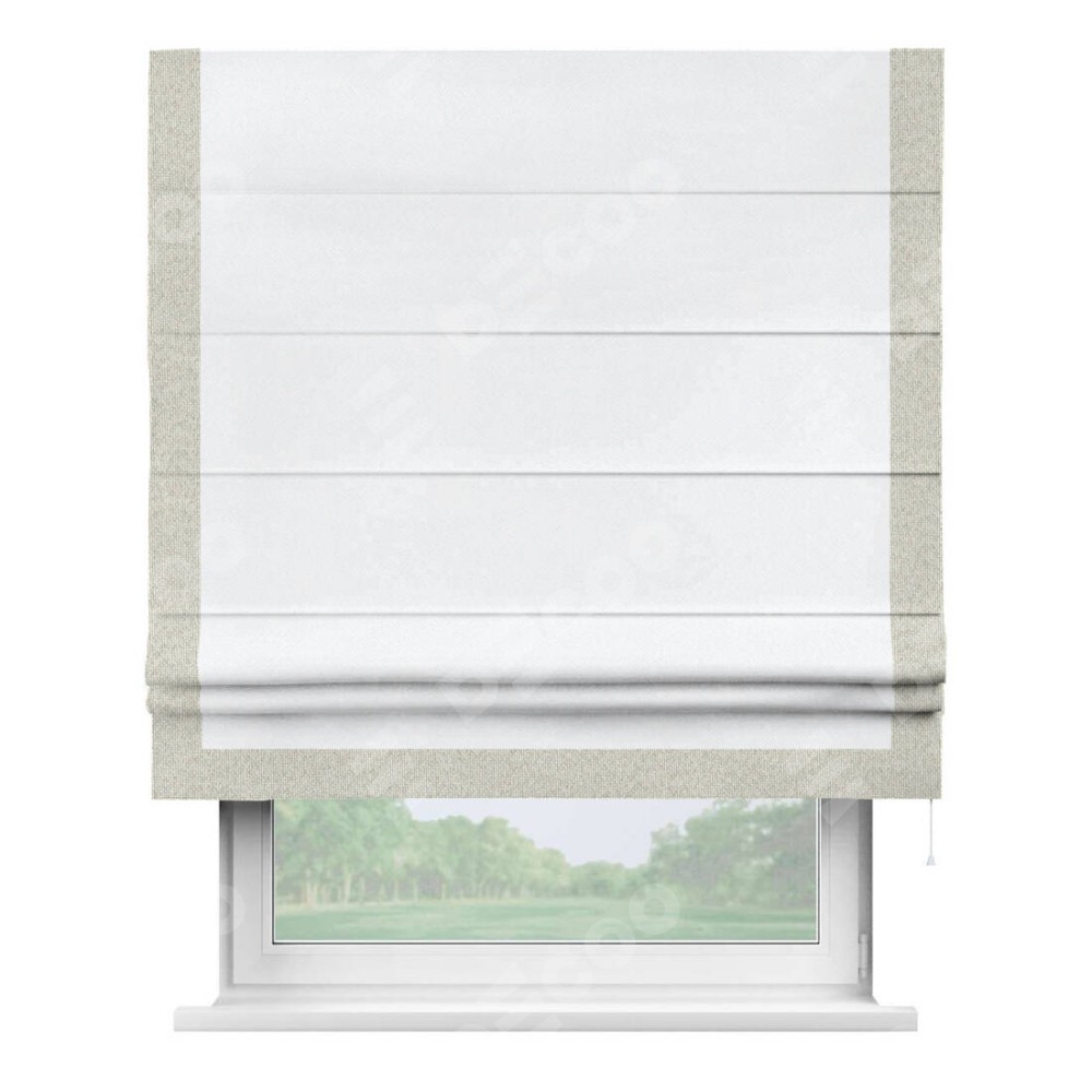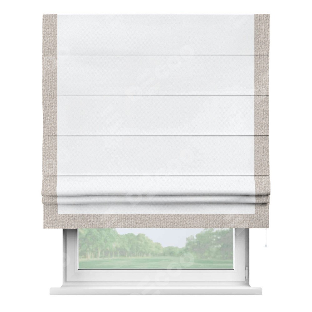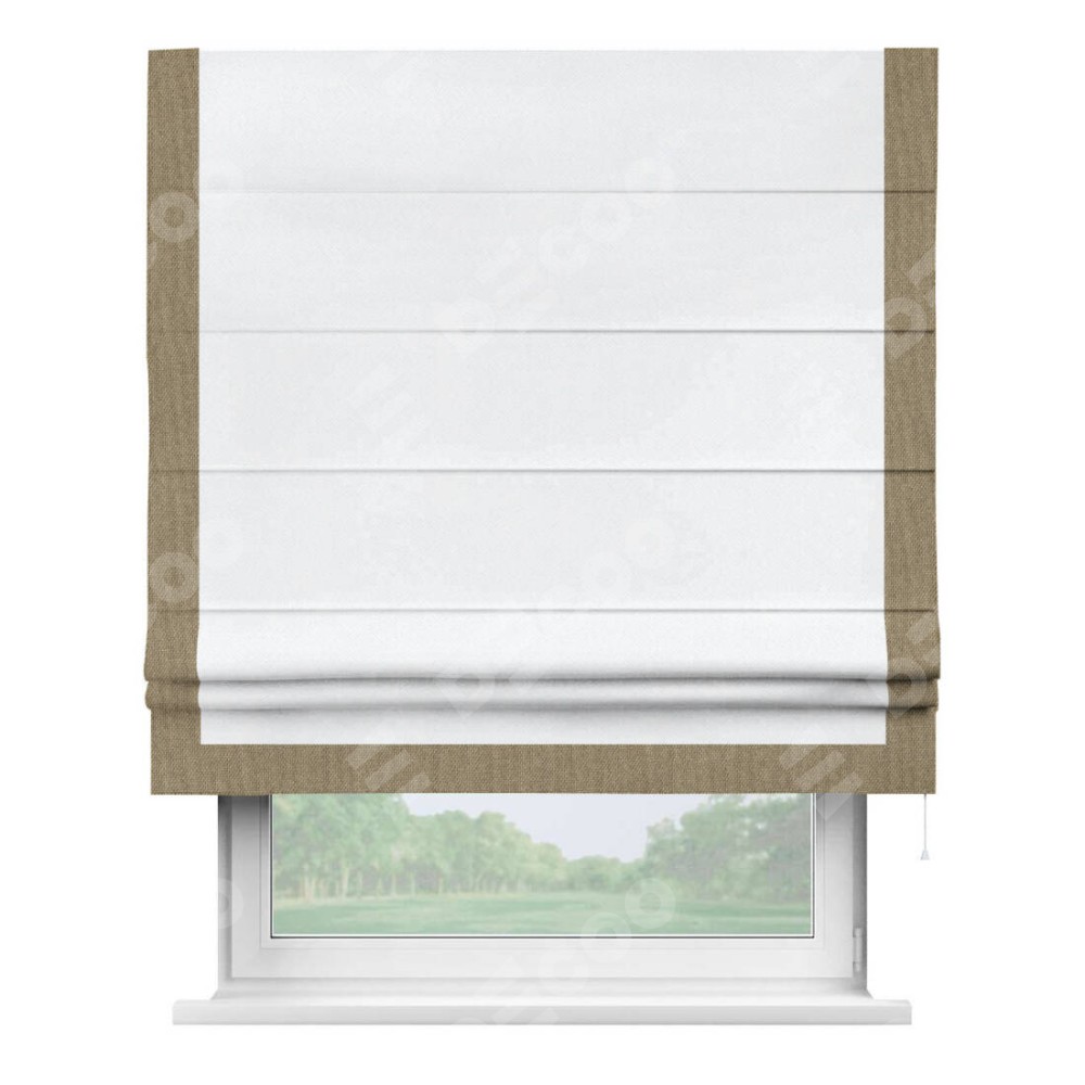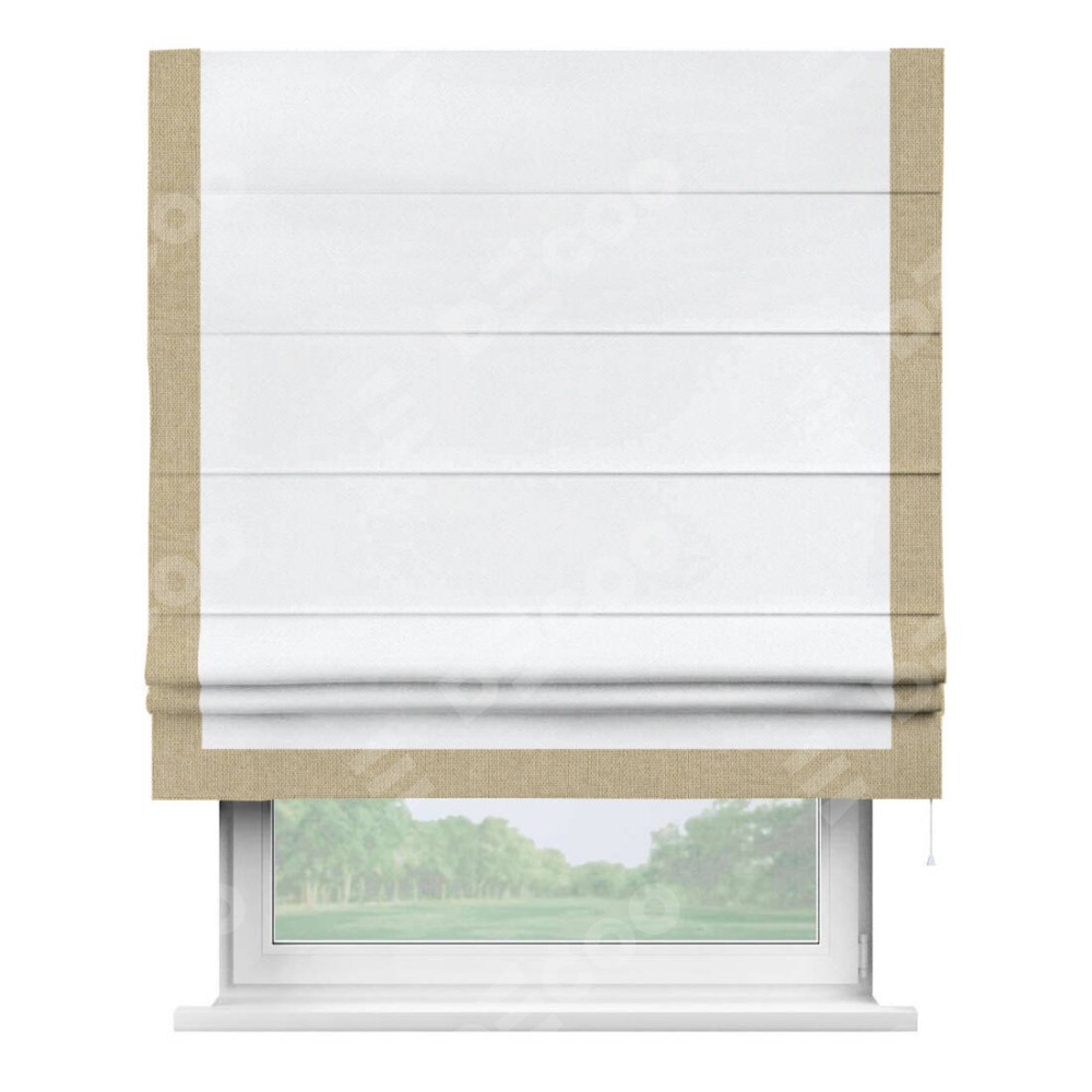 Римская штора «Кортин» для проема, лён димаут белый с кантом Виктория