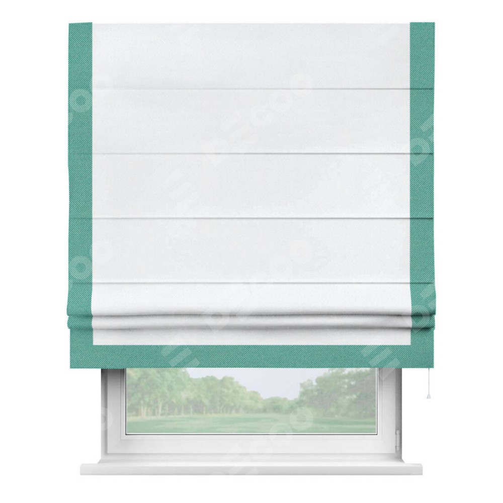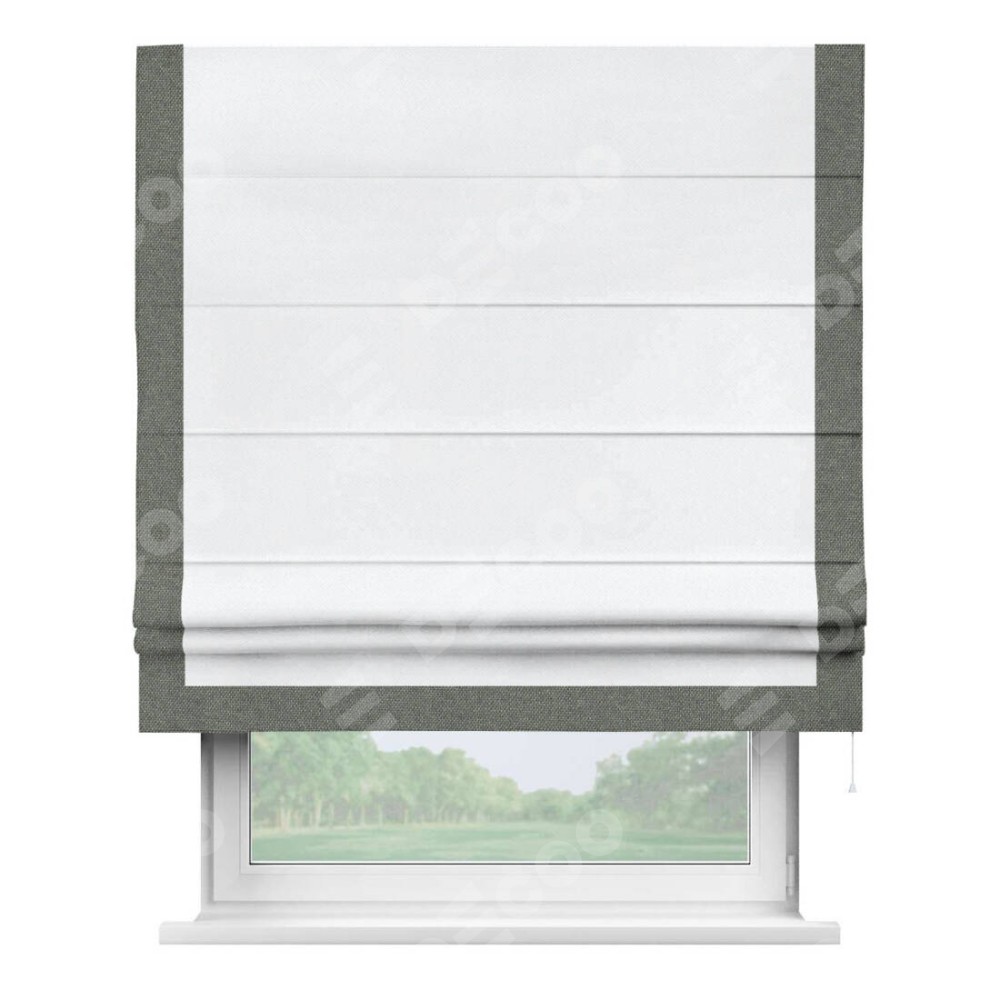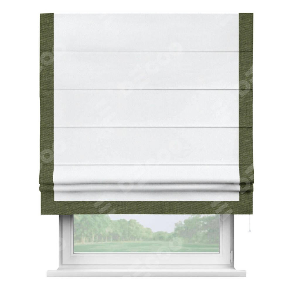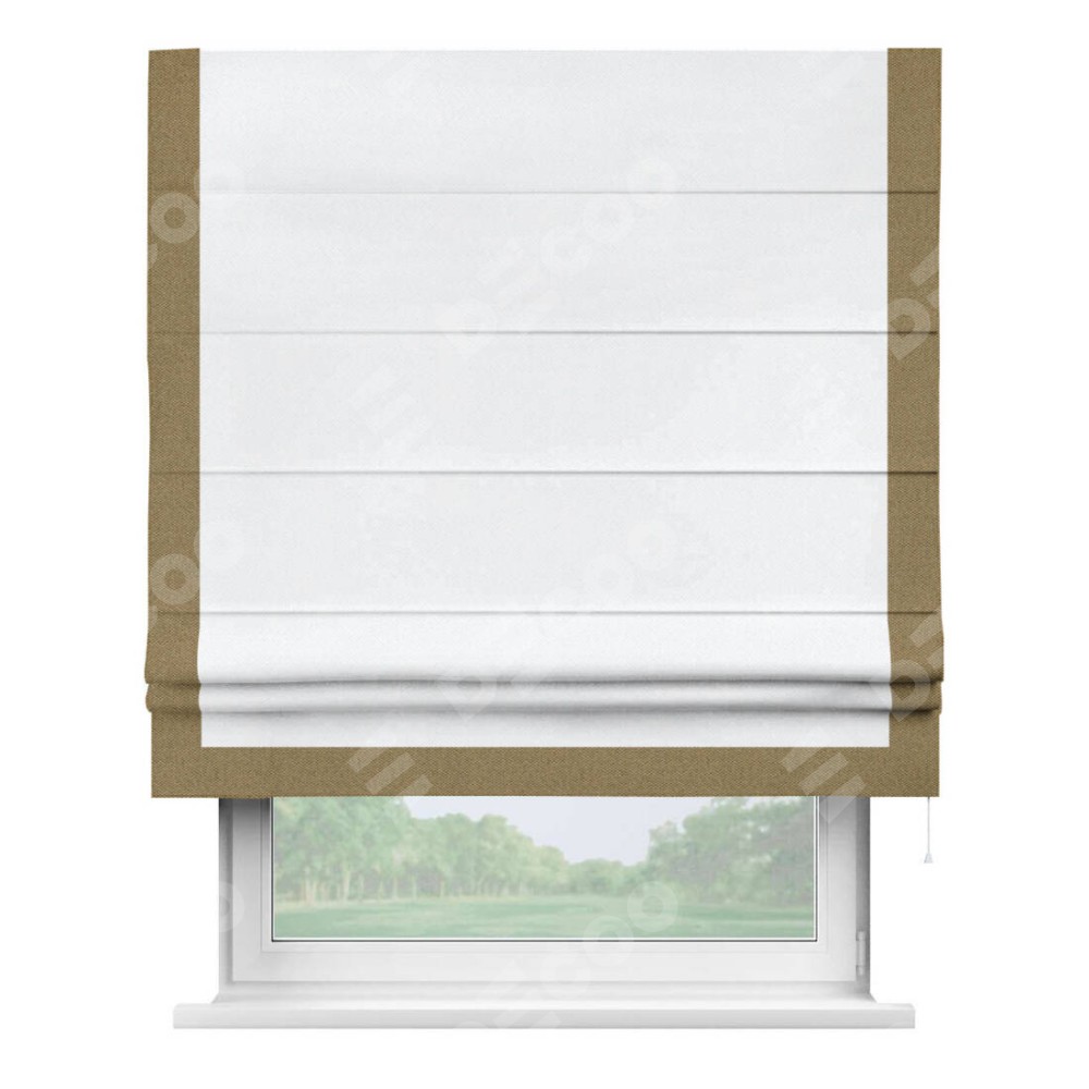 Римская штора «Кортин» для проема, лён димаут белый с кантом Виктория