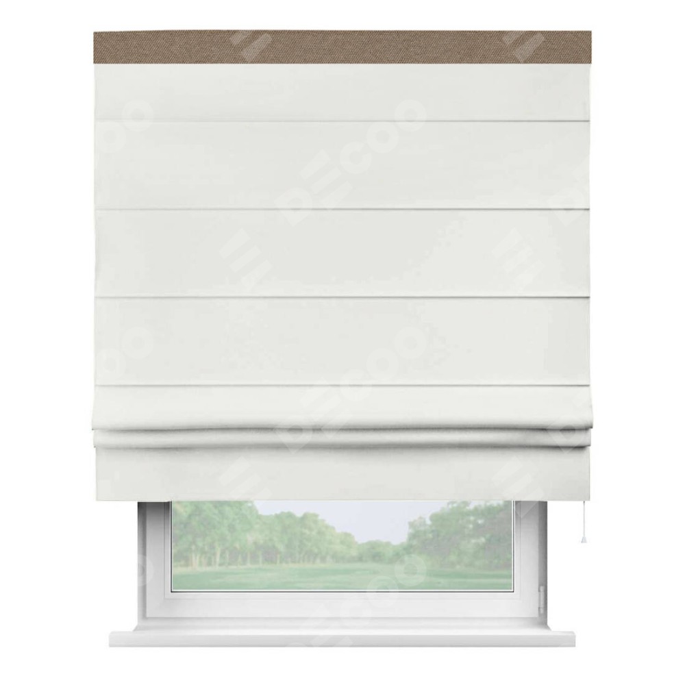 Римская штора «Кортин» для проема, лён димаут молочный с кантом Кинг