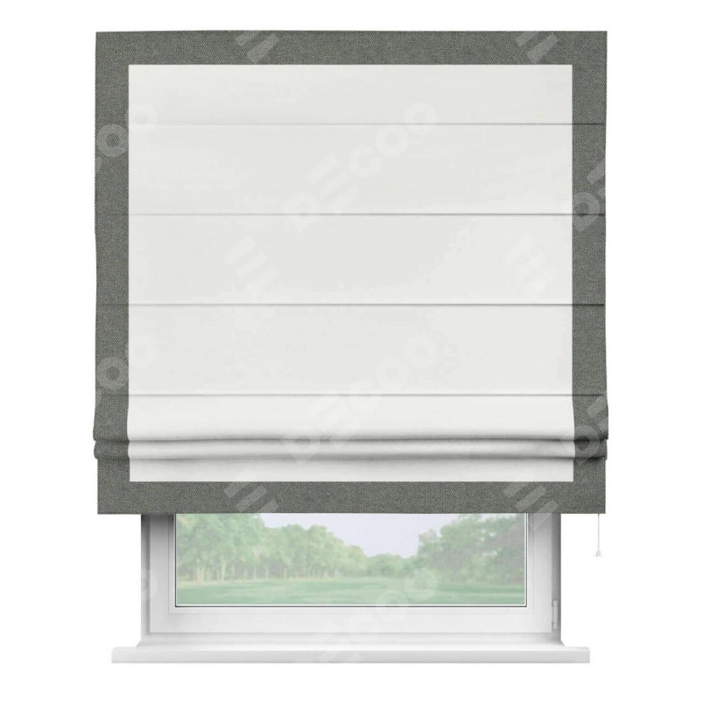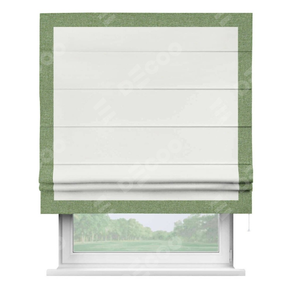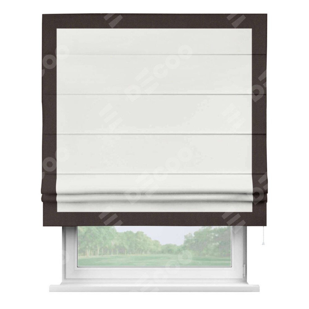 Римская штора «Кортин» для проема, лён димаут молочный с кантом Чесс