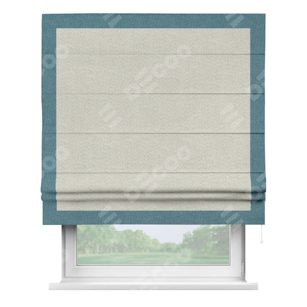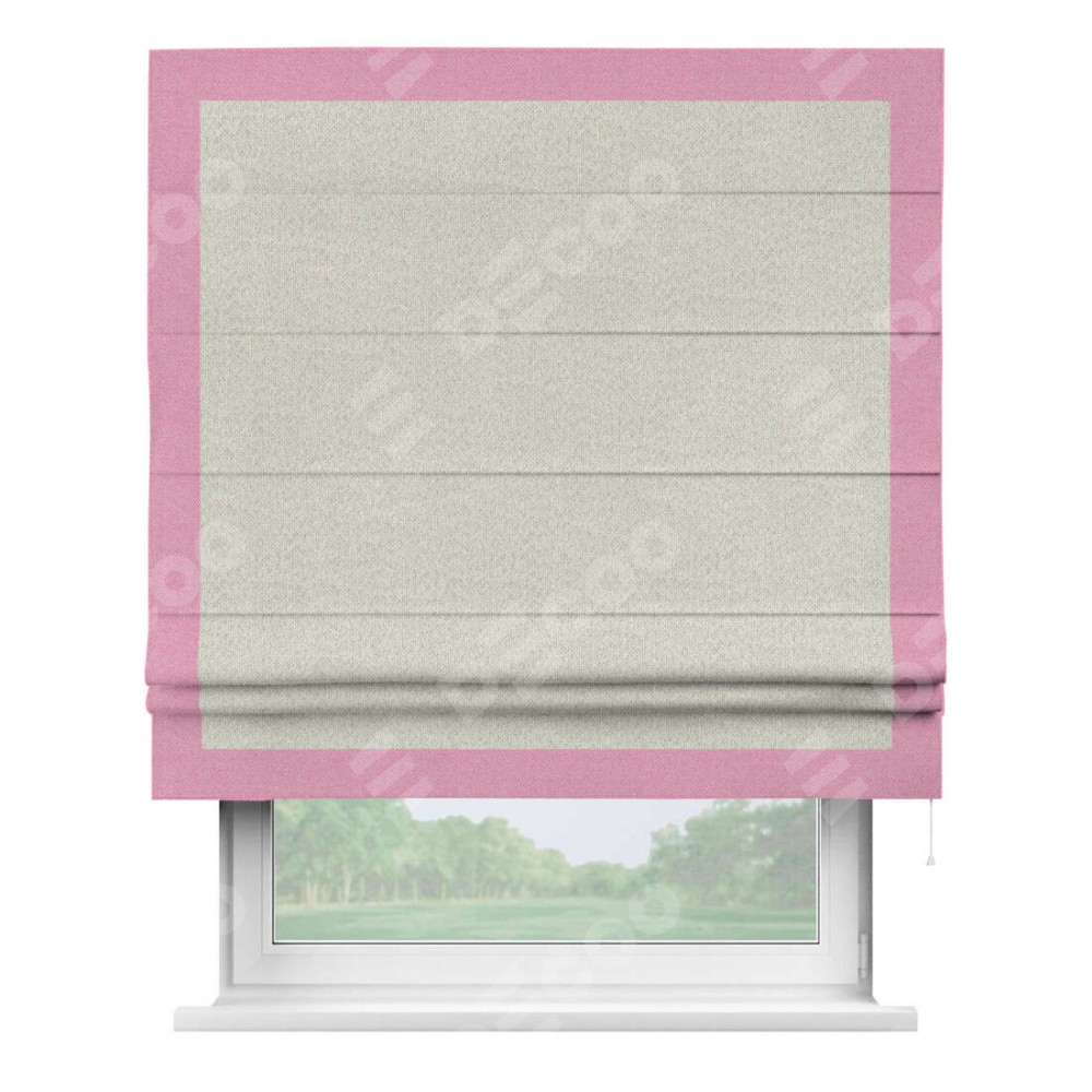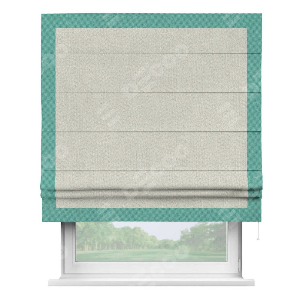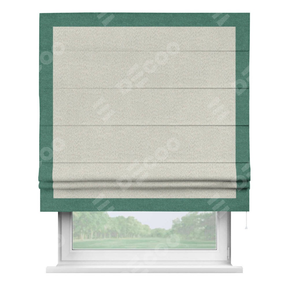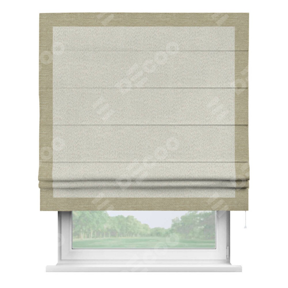 Римская штора «Cortin» для проёма, лён димаут светло-бежевый с кантом Чесс