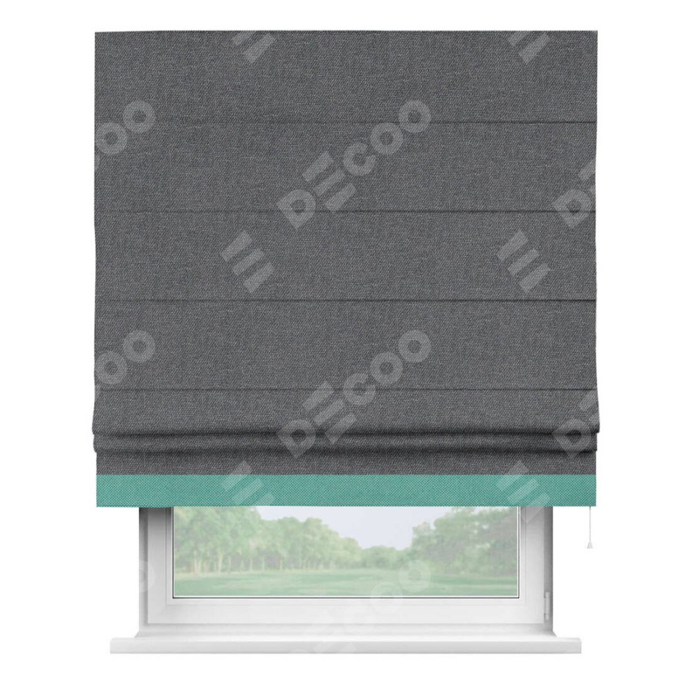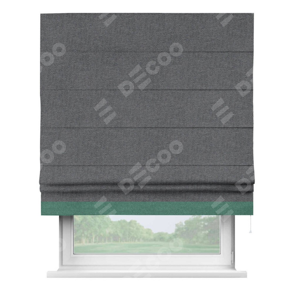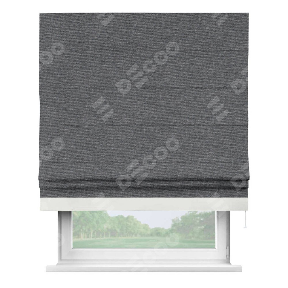 Римская штора «Кортин» для проёма, лён димаут графит с кантом Джестер