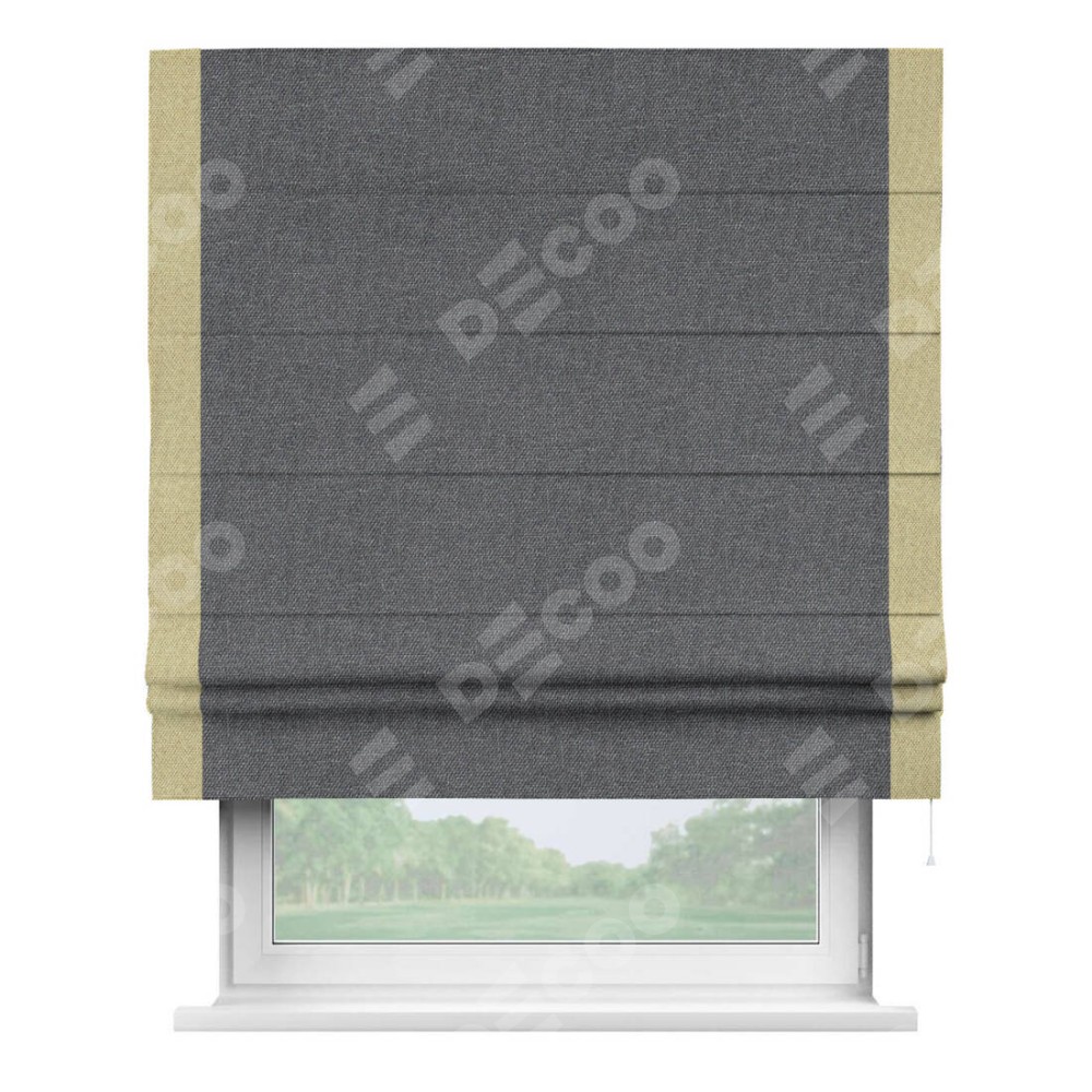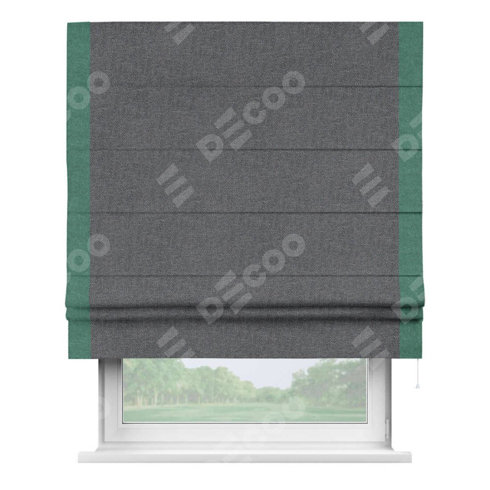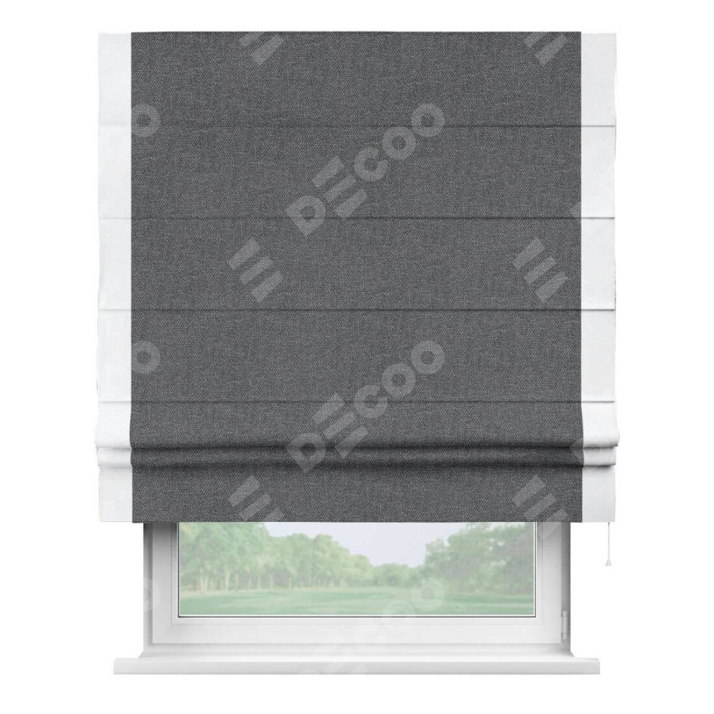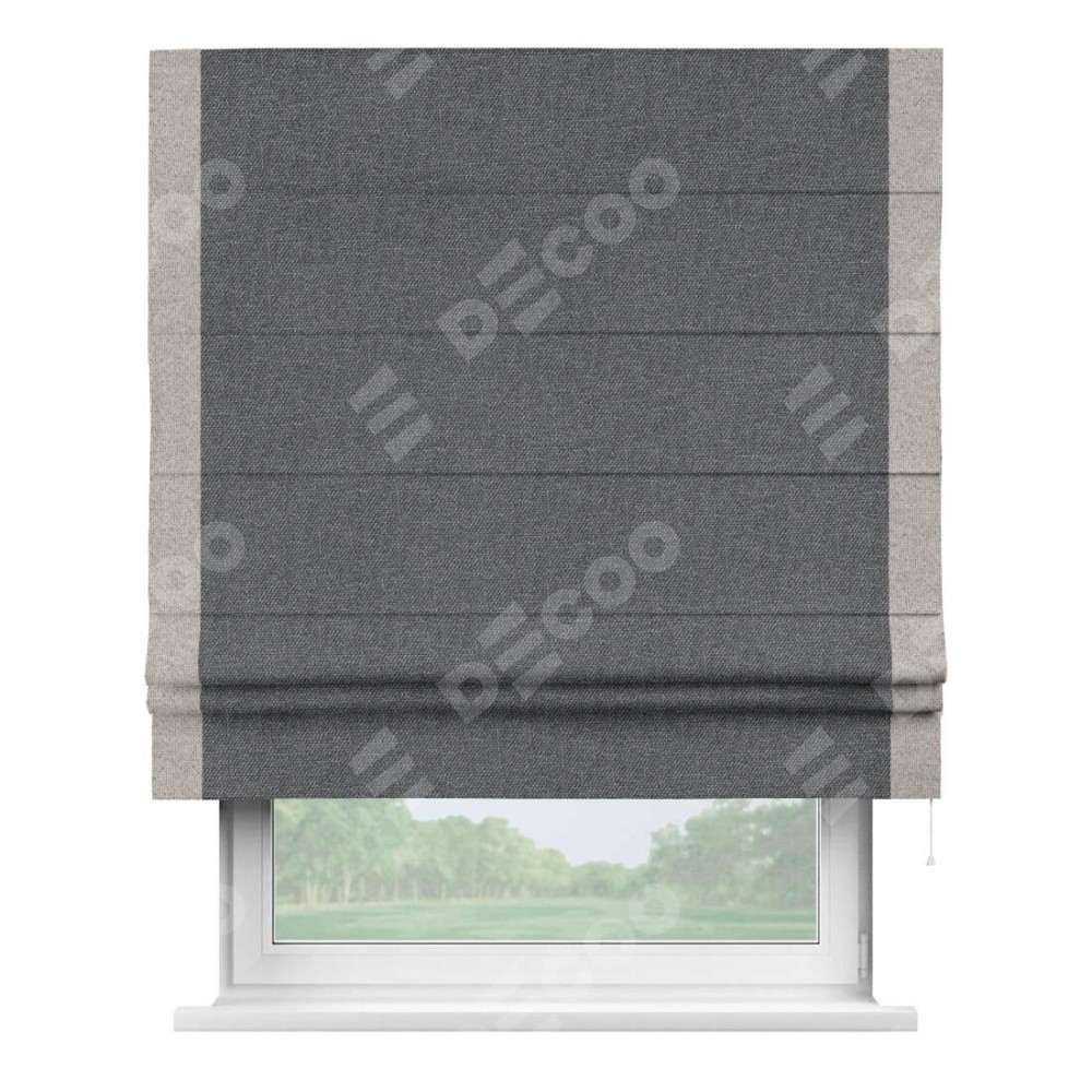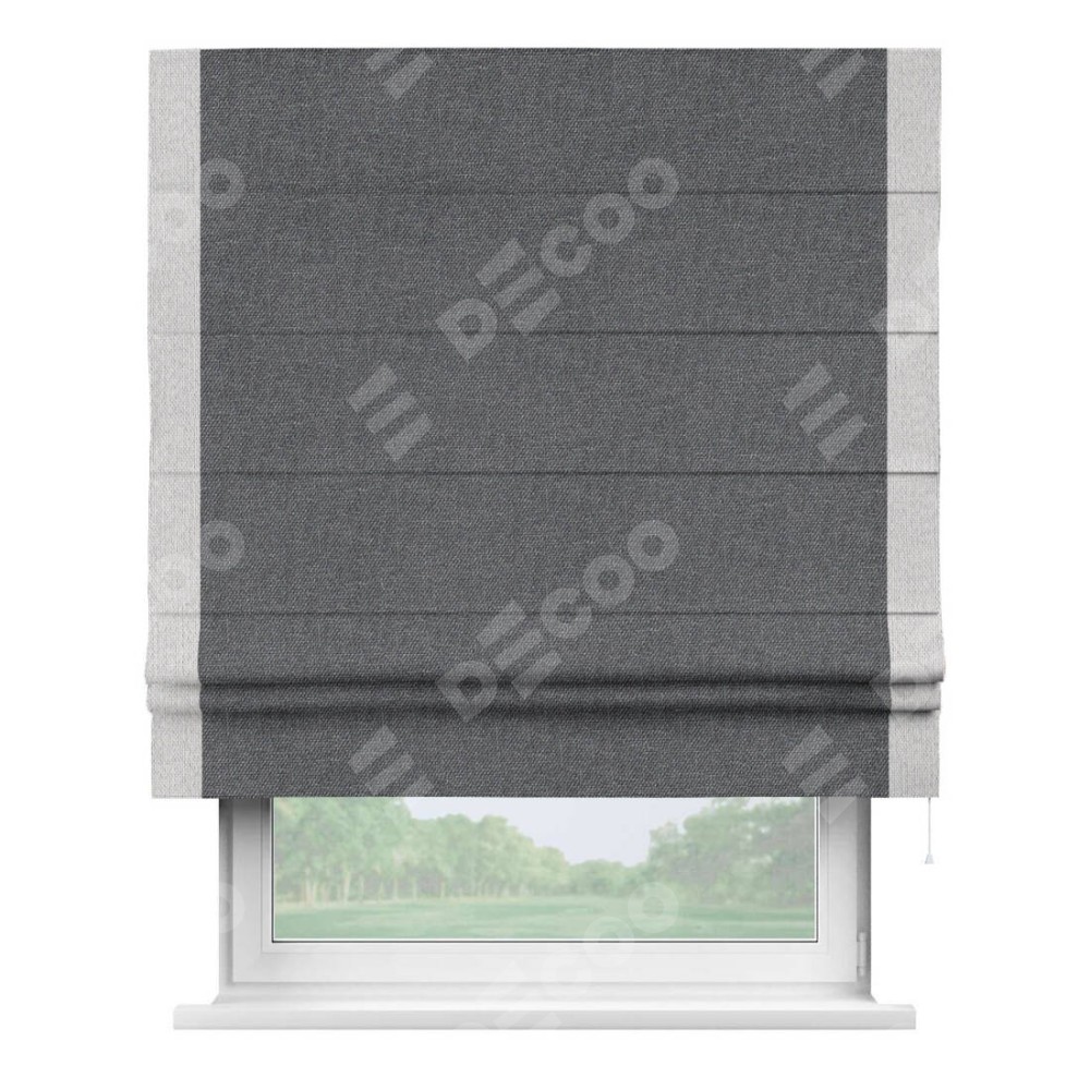 Классическая римская штора производителя «Cortin», пошита из ткани лён димаут графит, артикул: 140644. Имеет универсальный механизм и подходит для монтажа: на потолок, на стену и в нишу.