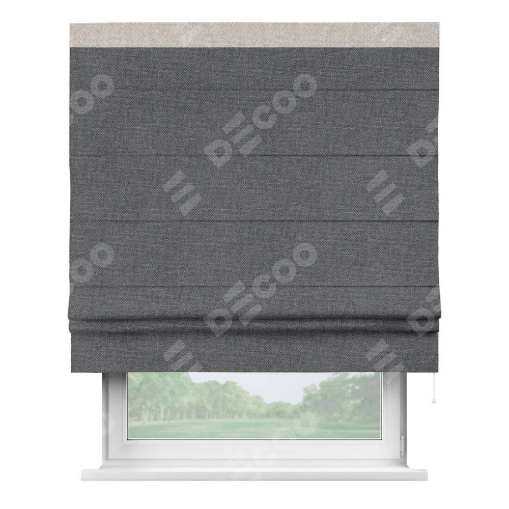 Римская штора «Кортин» для проёма, лён димаут графит с кантом Кинг доступна к заказу по по вашим размерам. Заводской артикул: 30237. Стоимость пошива будет зависеть от размеров и будет начинаться от 3 346 руб. В интернет-магазине Decoo вы сможете заказать товар в любых размерных вариациях.