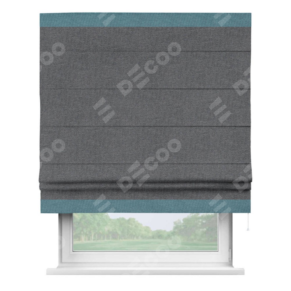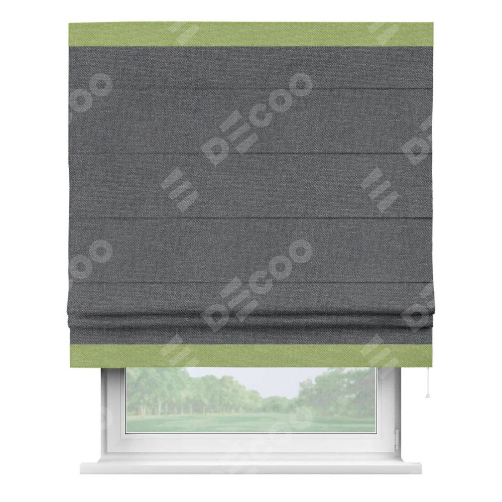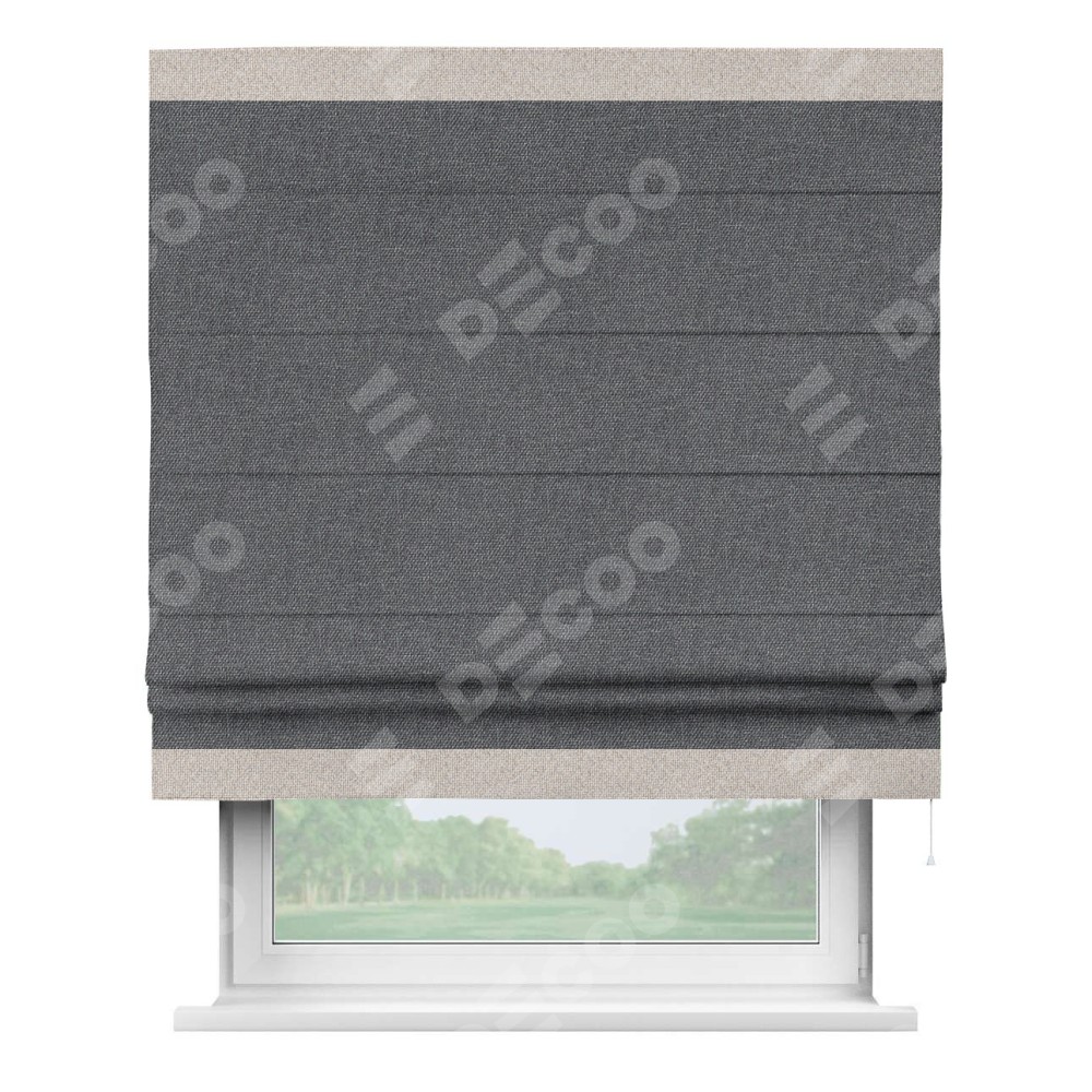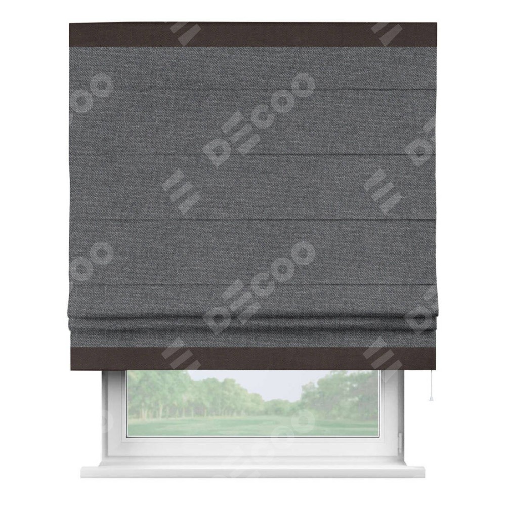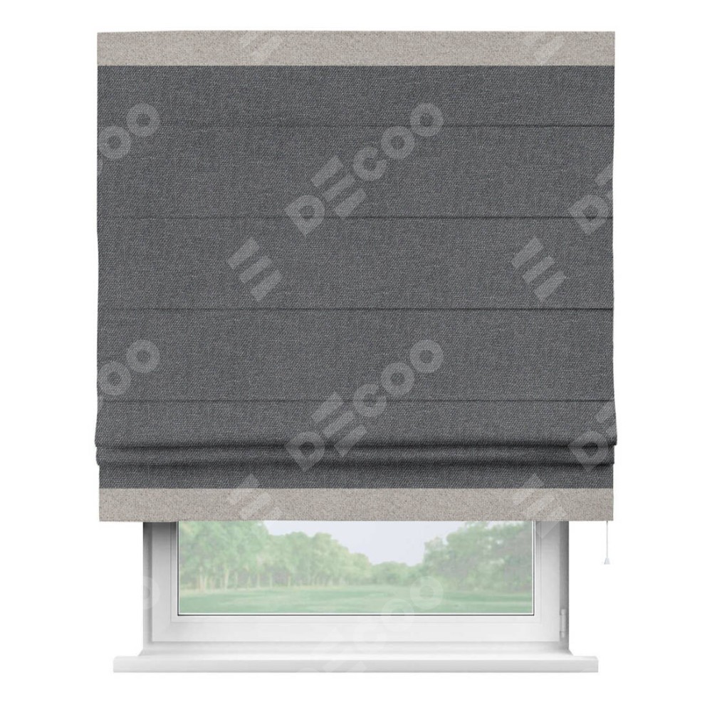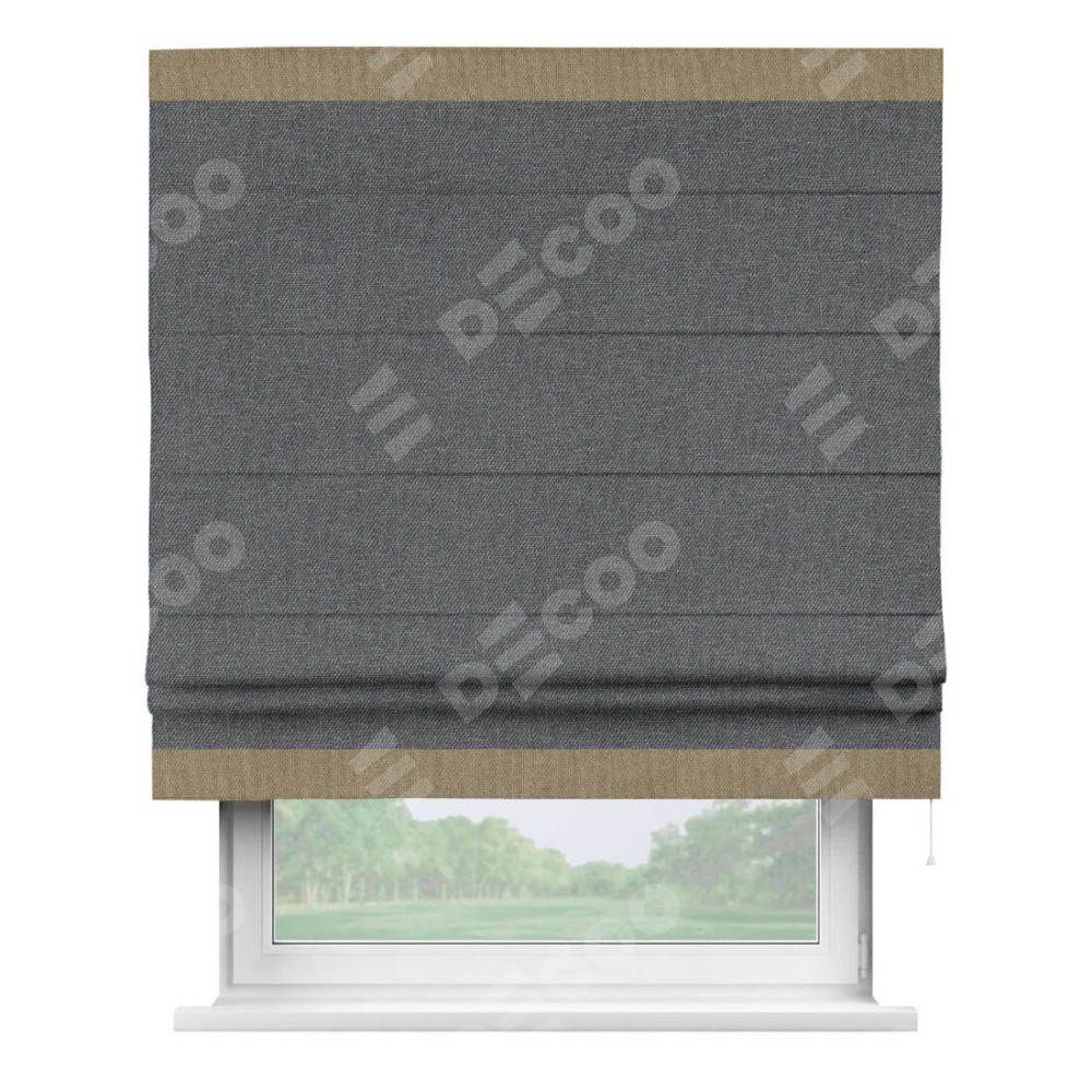 Римская штора «Кортин» для проёма, лён димаут графит с кантом Горизонт