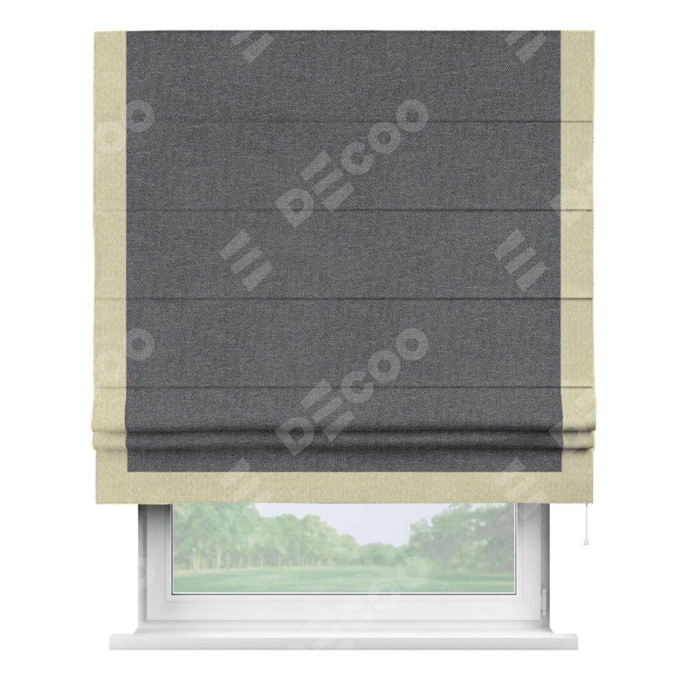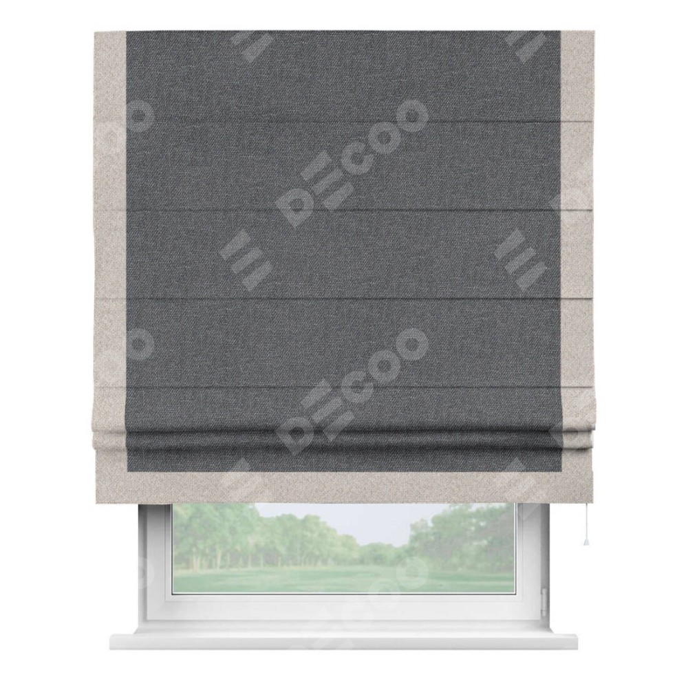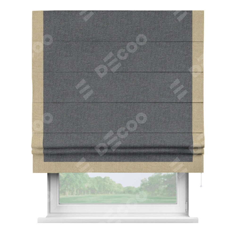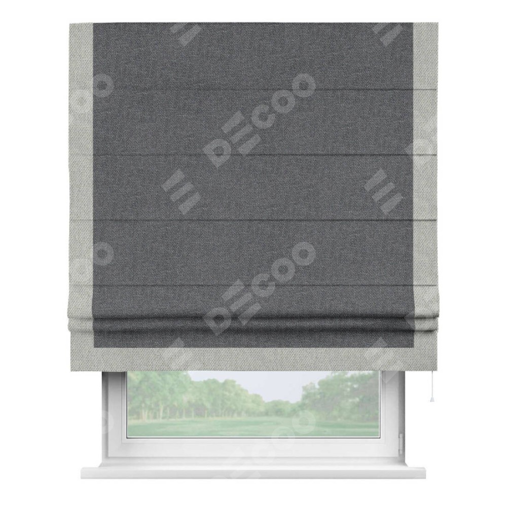 Классическая римская штора производителя «Cortin», пошита из ткани лён димаут графит, артикул: 140644. Имеет универсальный механизм и подходит для монтажа: на потолок, на стену и в нишу.