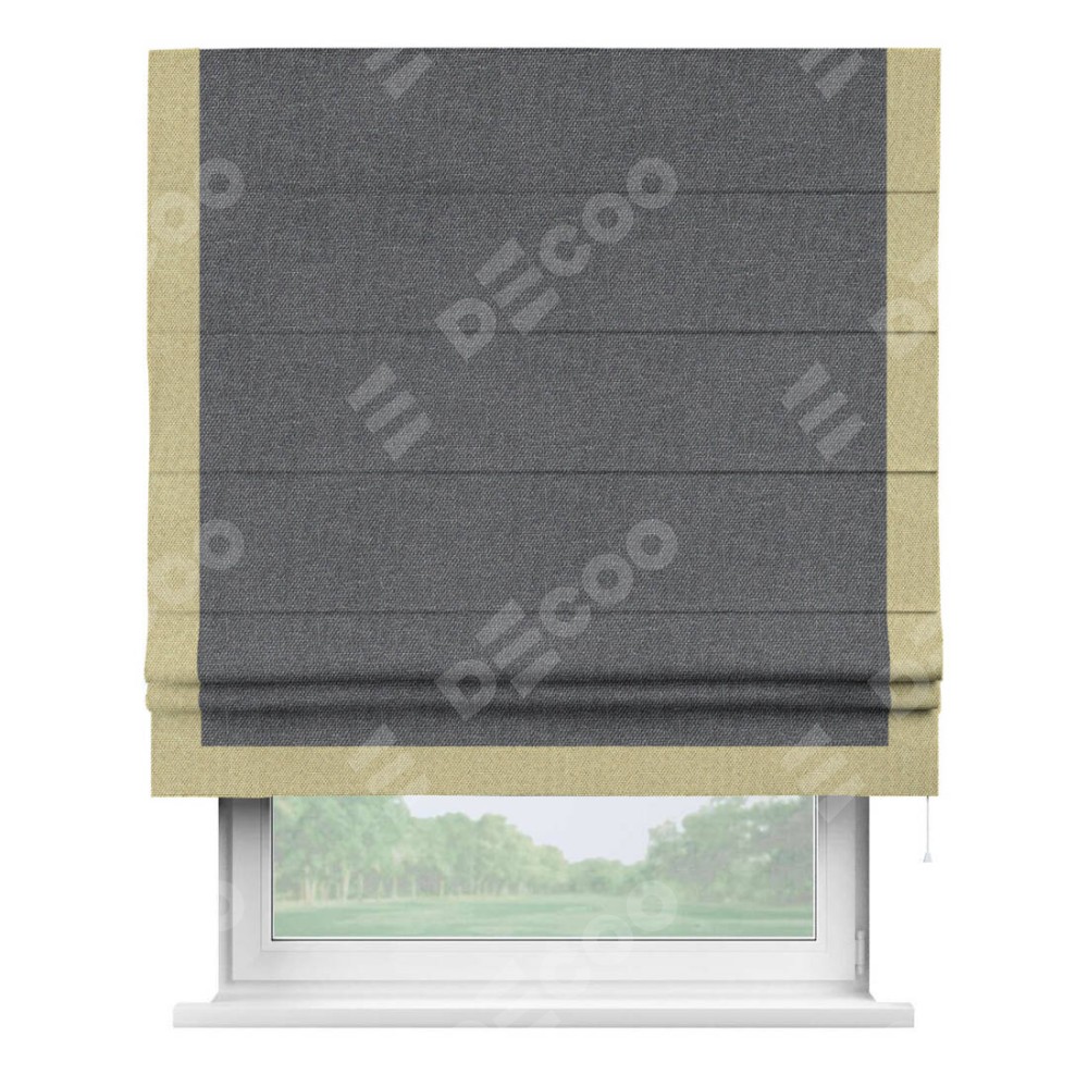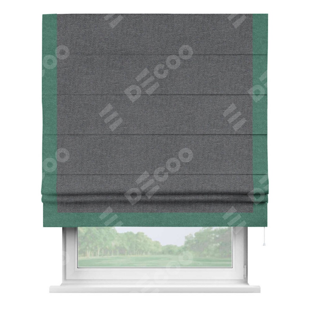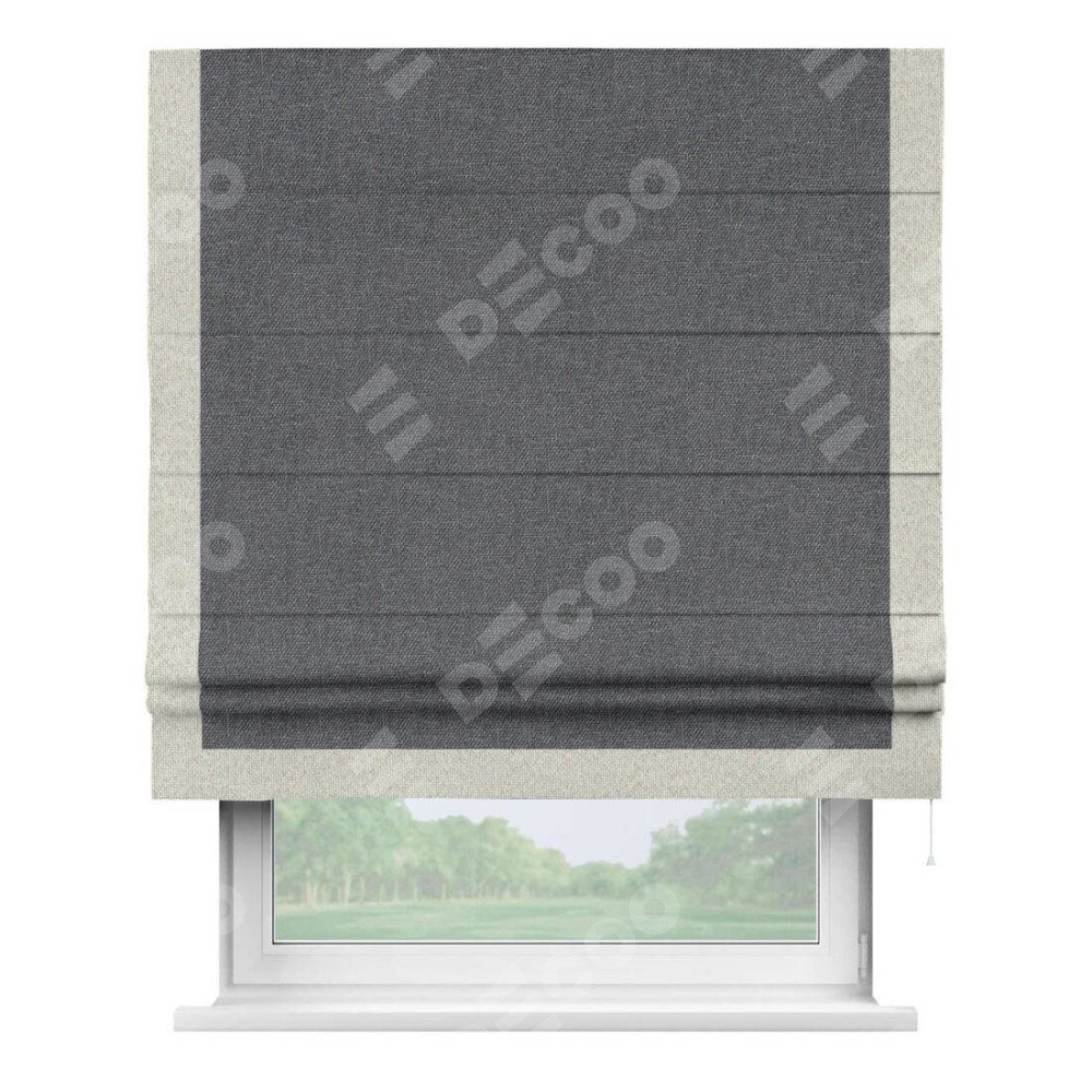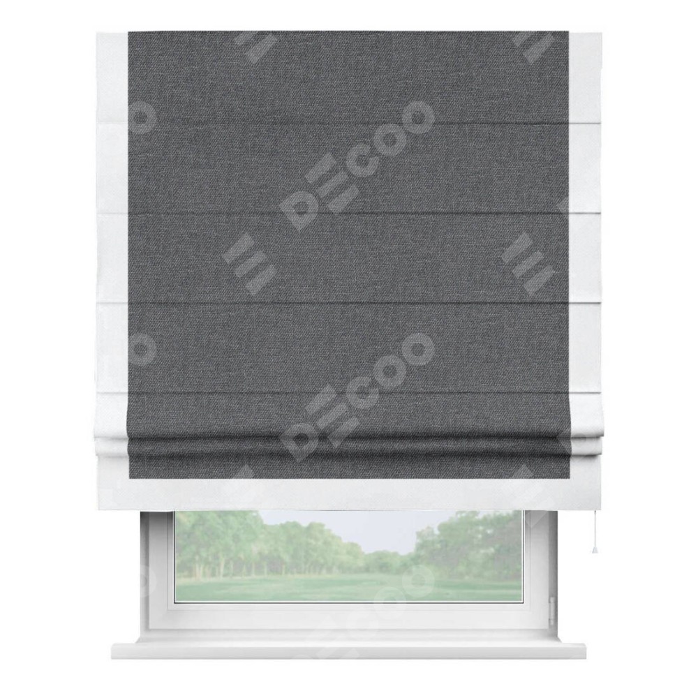 Классическая римская штора производителя «Cortin», пошита из ткани лён димаут графит, артикул: 140644. Имеет универсальный механизм и подходит для монтажа: на потолок, на стену и в нишу.