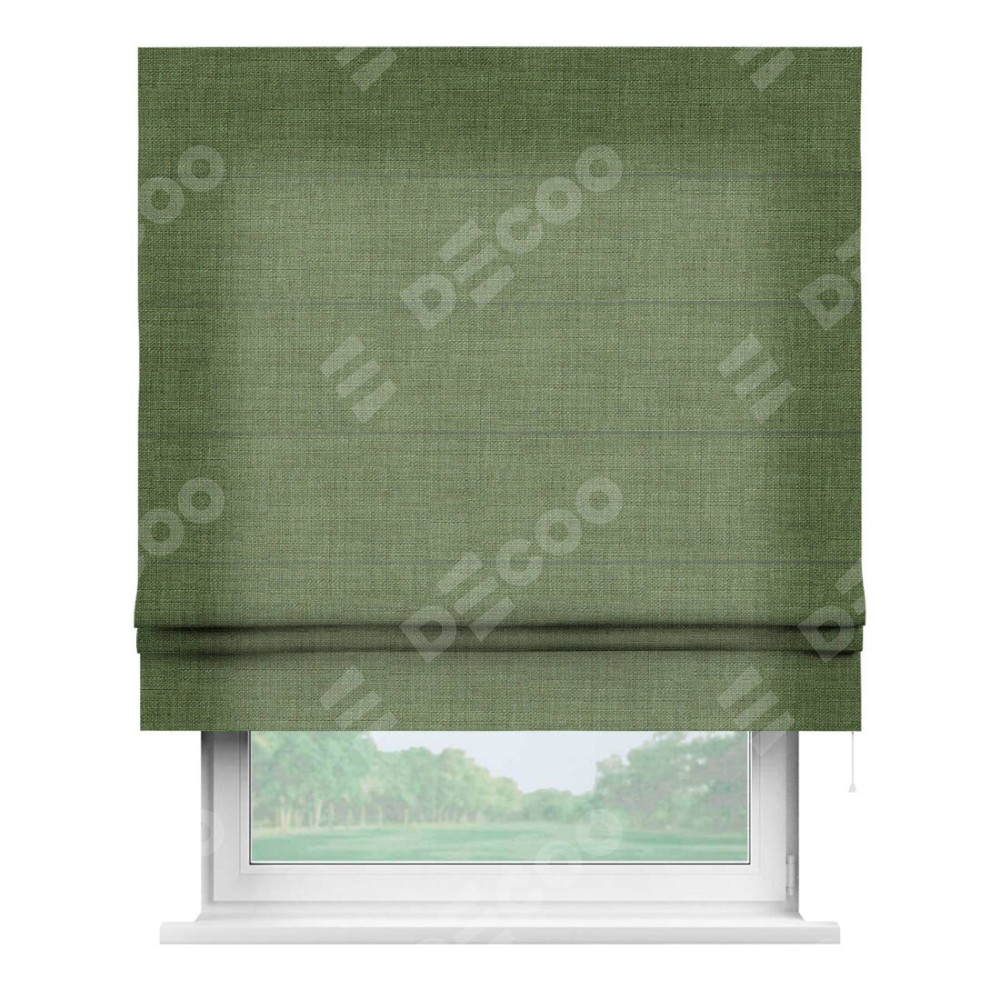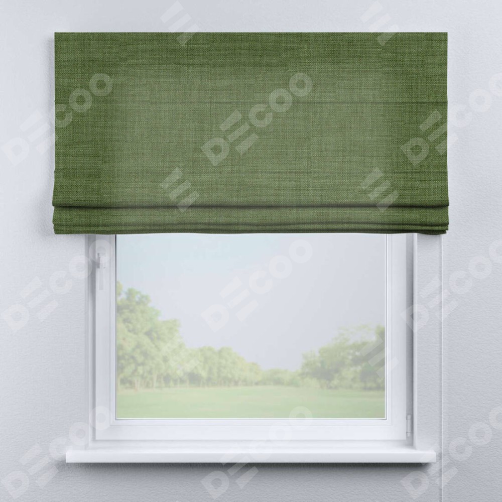 Классическая римская штора производителя «Cortin», пошита из ткани лён зелёный, артикул: 131547. Имеет универсальный механизм и подходит для монтажа: на потолок, на стену и в нишу.