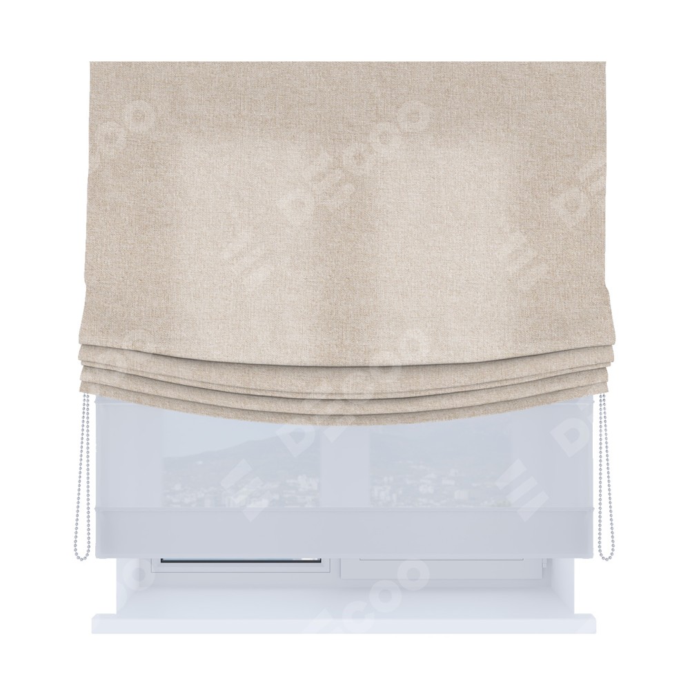 Двойная римская штора «День-ночь» от производителя Cortin предназначена для использования в проёмах. Эта штора уникальна тем, что состоит из двух полотен. На лицевой стороне находится лён кашемир натуральный беж (артикул: bej), обеспечивающий эффективное затемнение. В комплект также входит вторая ткань — легкий белый тюль (артикул: V-01), который добавляет изящества и легкости оформлению окна. Кроме того, доступны и другие разновидности ткани тюль, выбор которых доступен по ссылке .