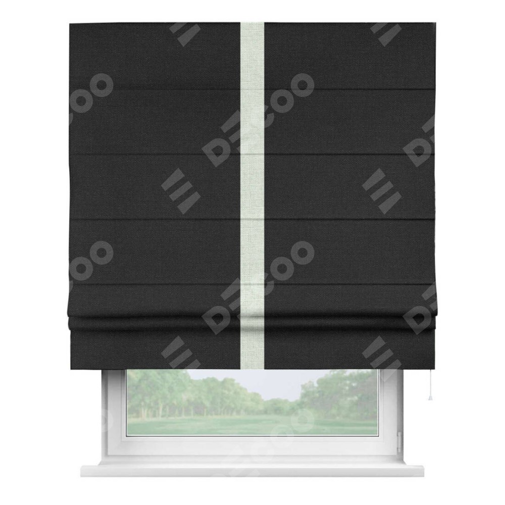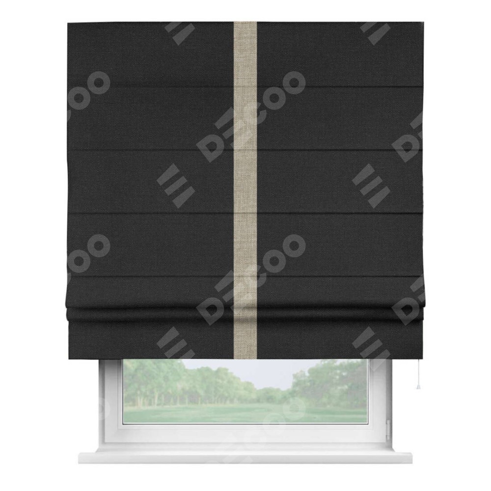 Римская штора «Кортин» для проёма, лён чёрный, с кантом Хайвэй