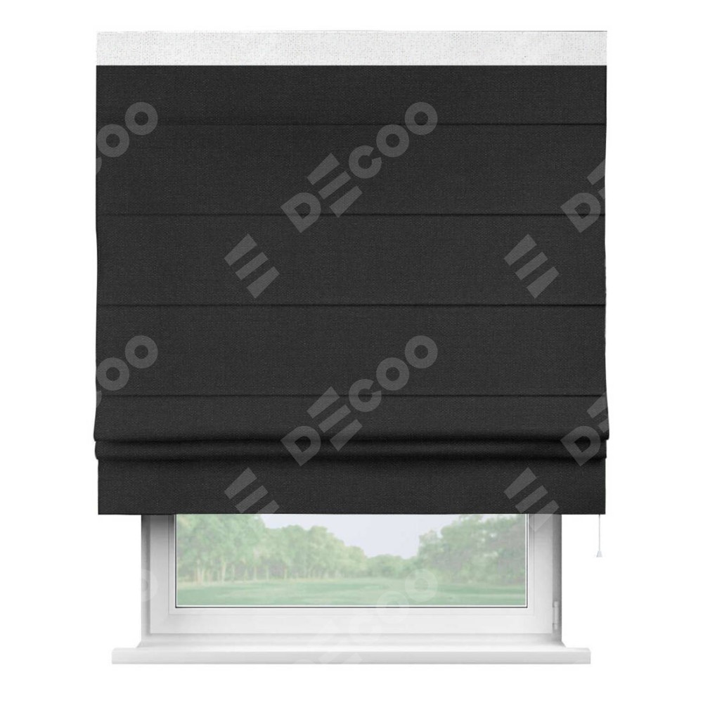 Римская штора «Кортин» для проёма, лён чёрный, с кантом Кинг