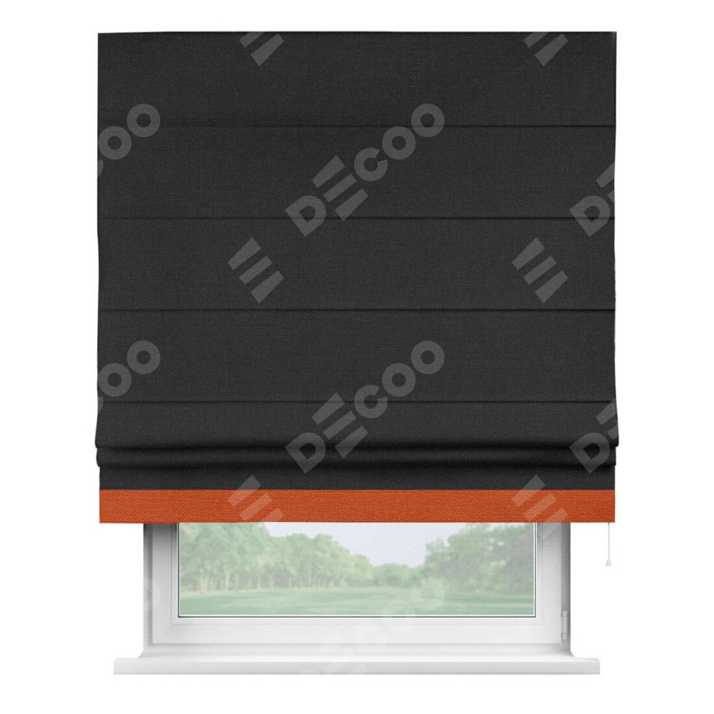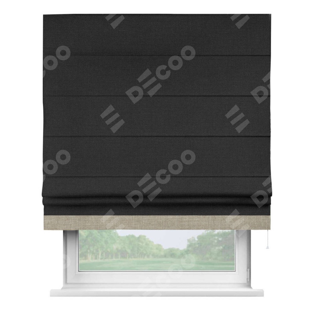 Римская штора «Кортин» для проёма, лён чёрный, с кантом Джестер