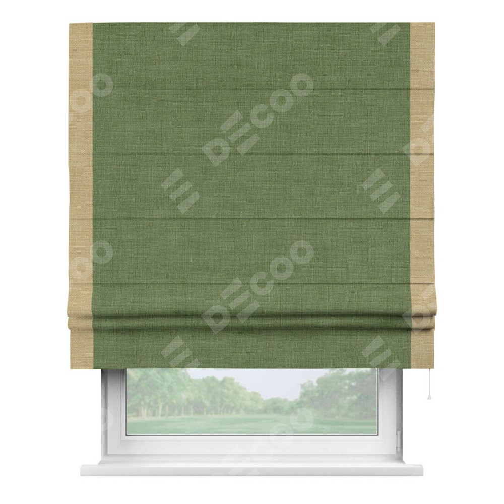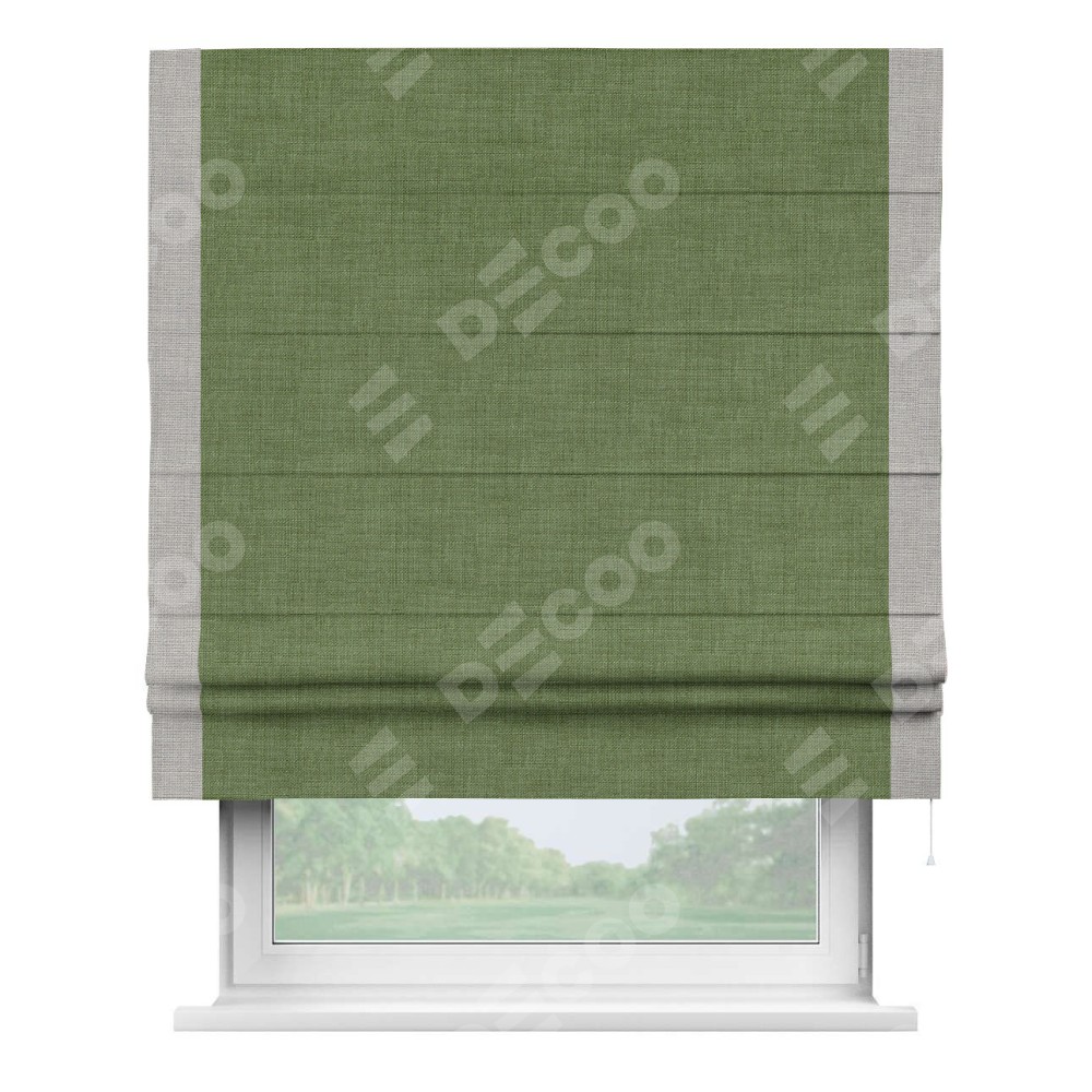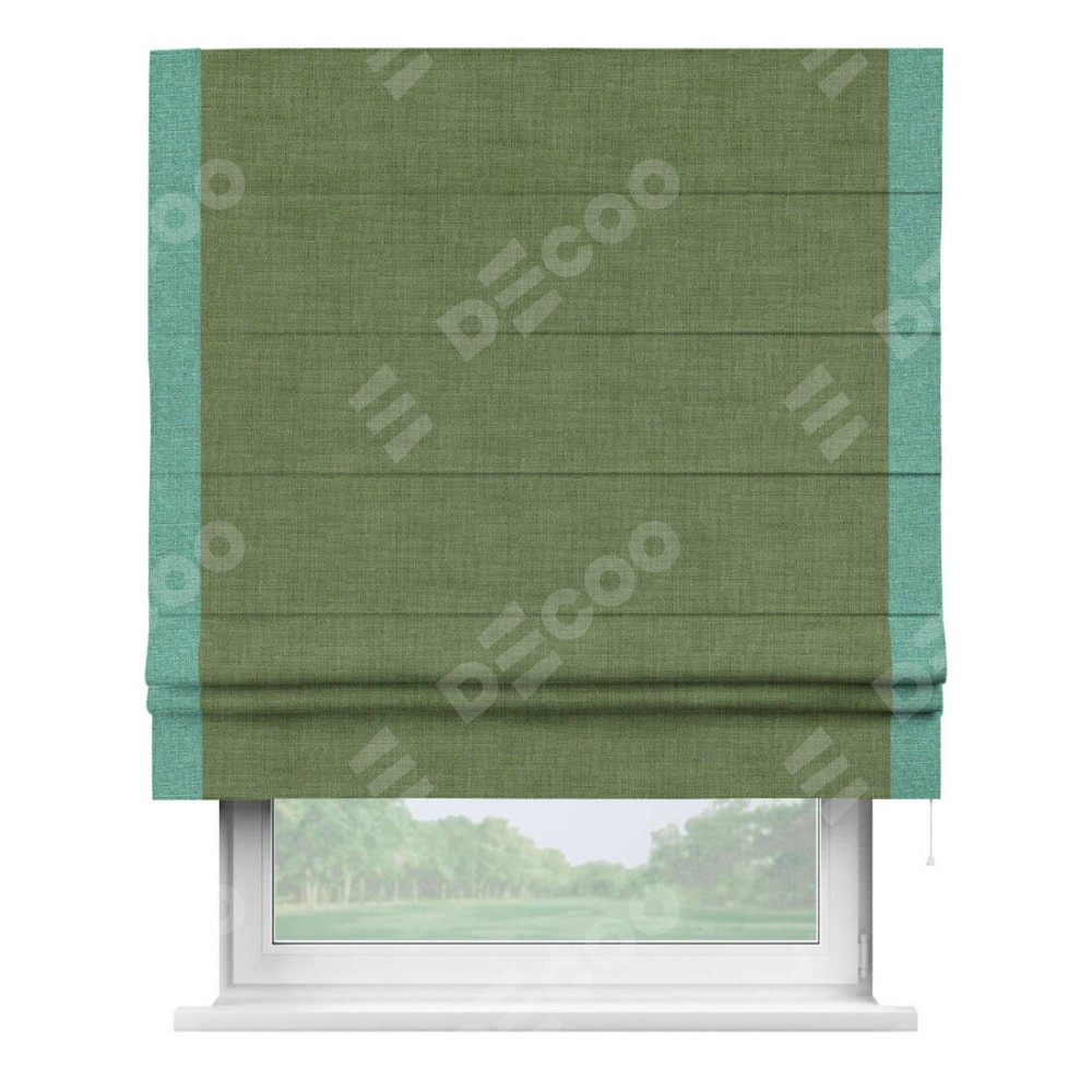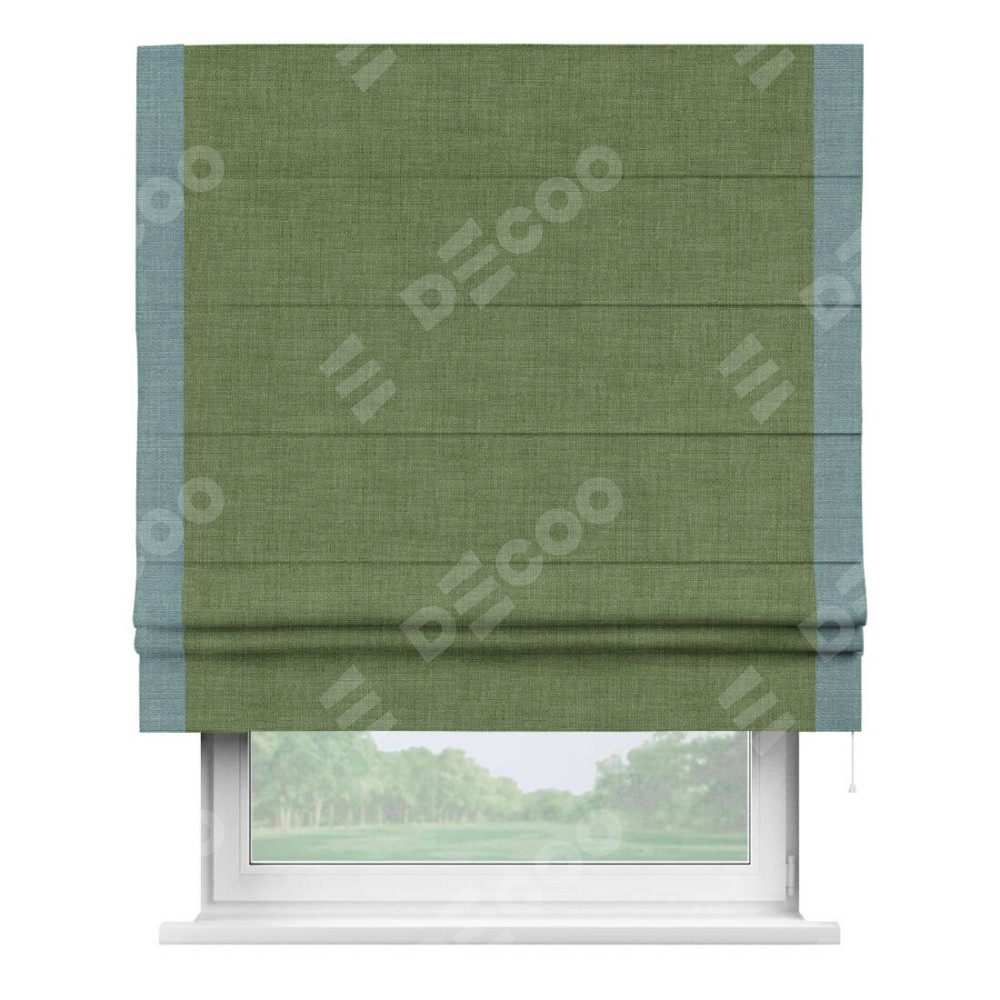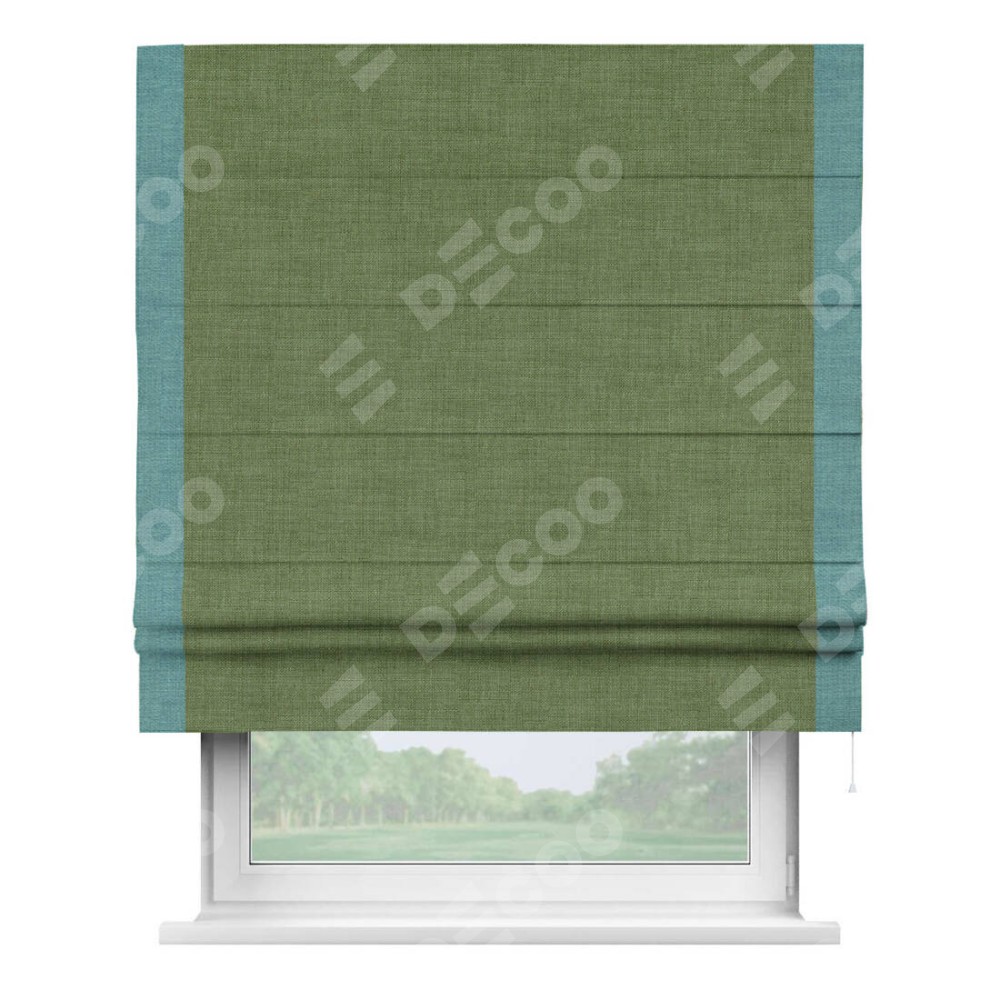 Римская штора «Кортин» для проёма, лён зелёный, с кантом Стрим Дуо