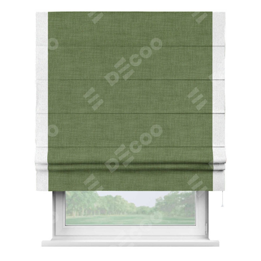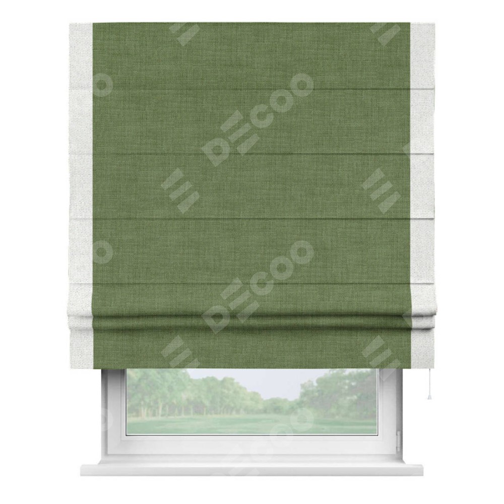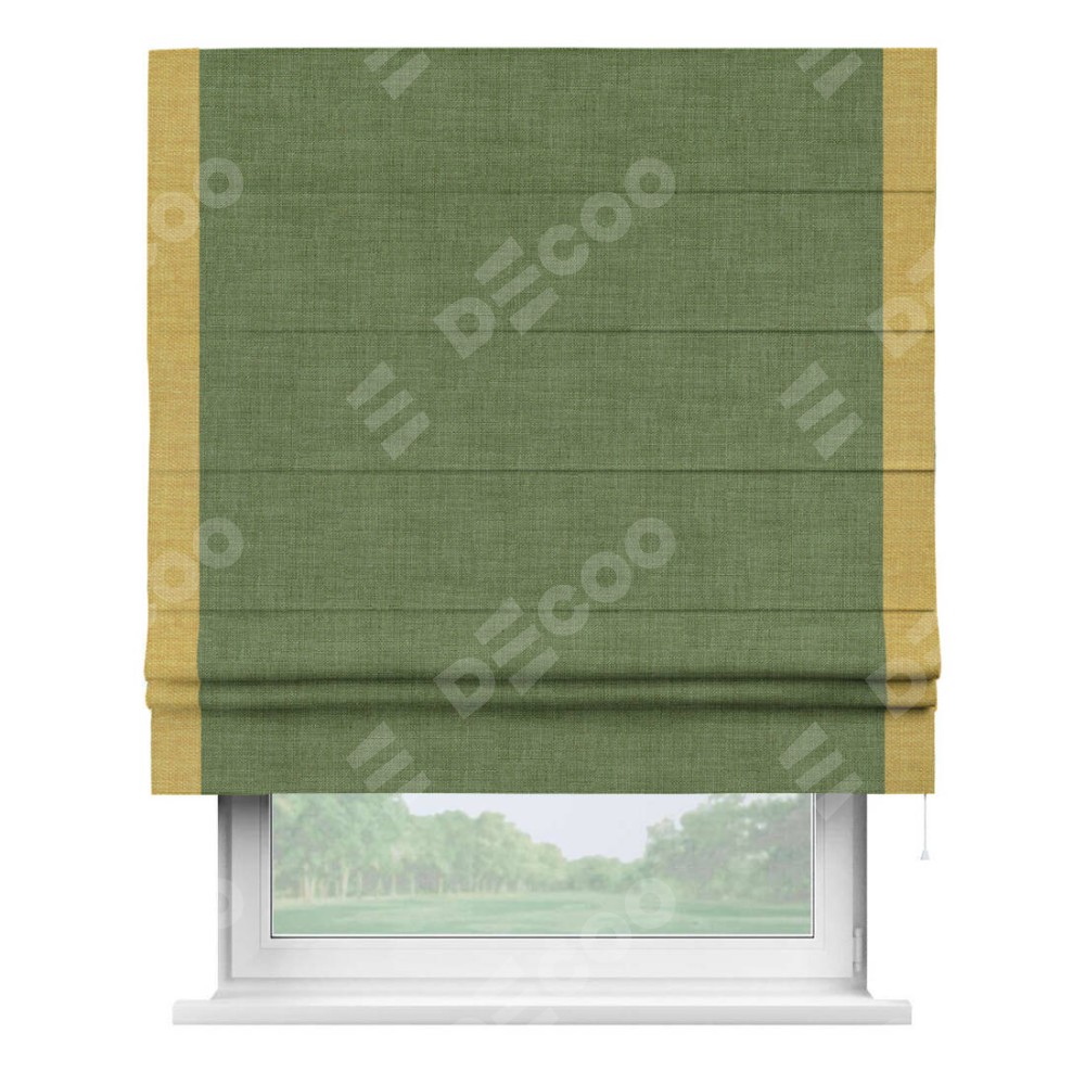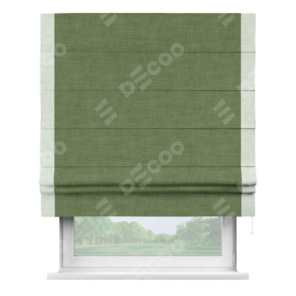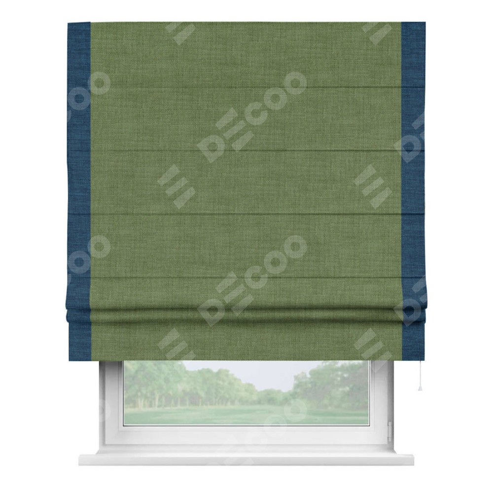 Римская штора «Кортин» для проёма, лён зелёный, с кантом Стрим Дуо