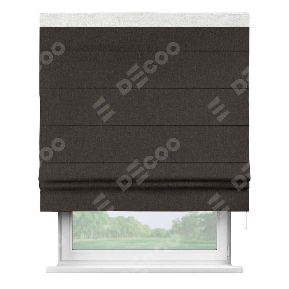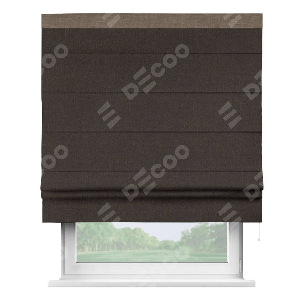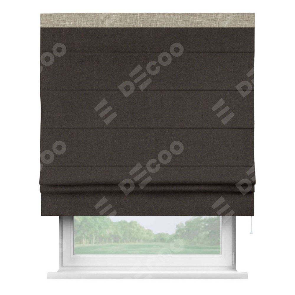 Римская штора «Кортин» для проёма, лён тёмно-коричневый, с кантом Кинг
