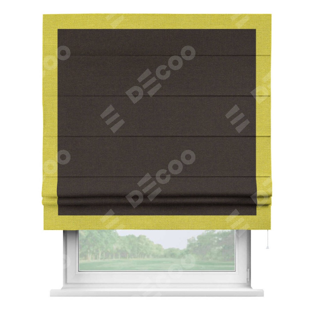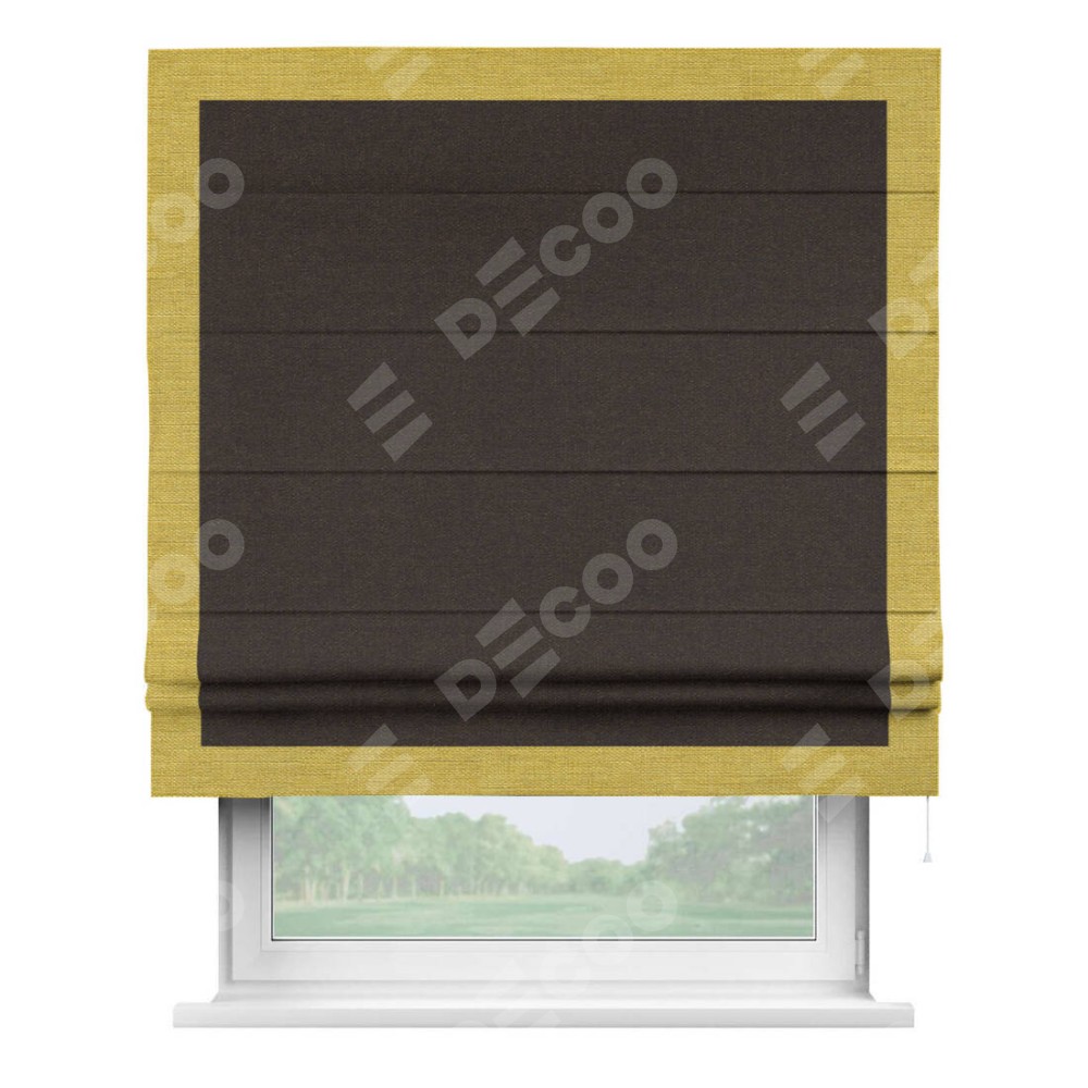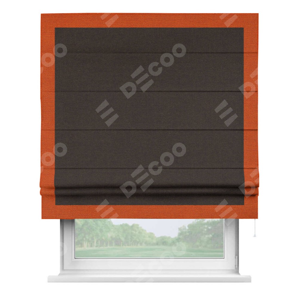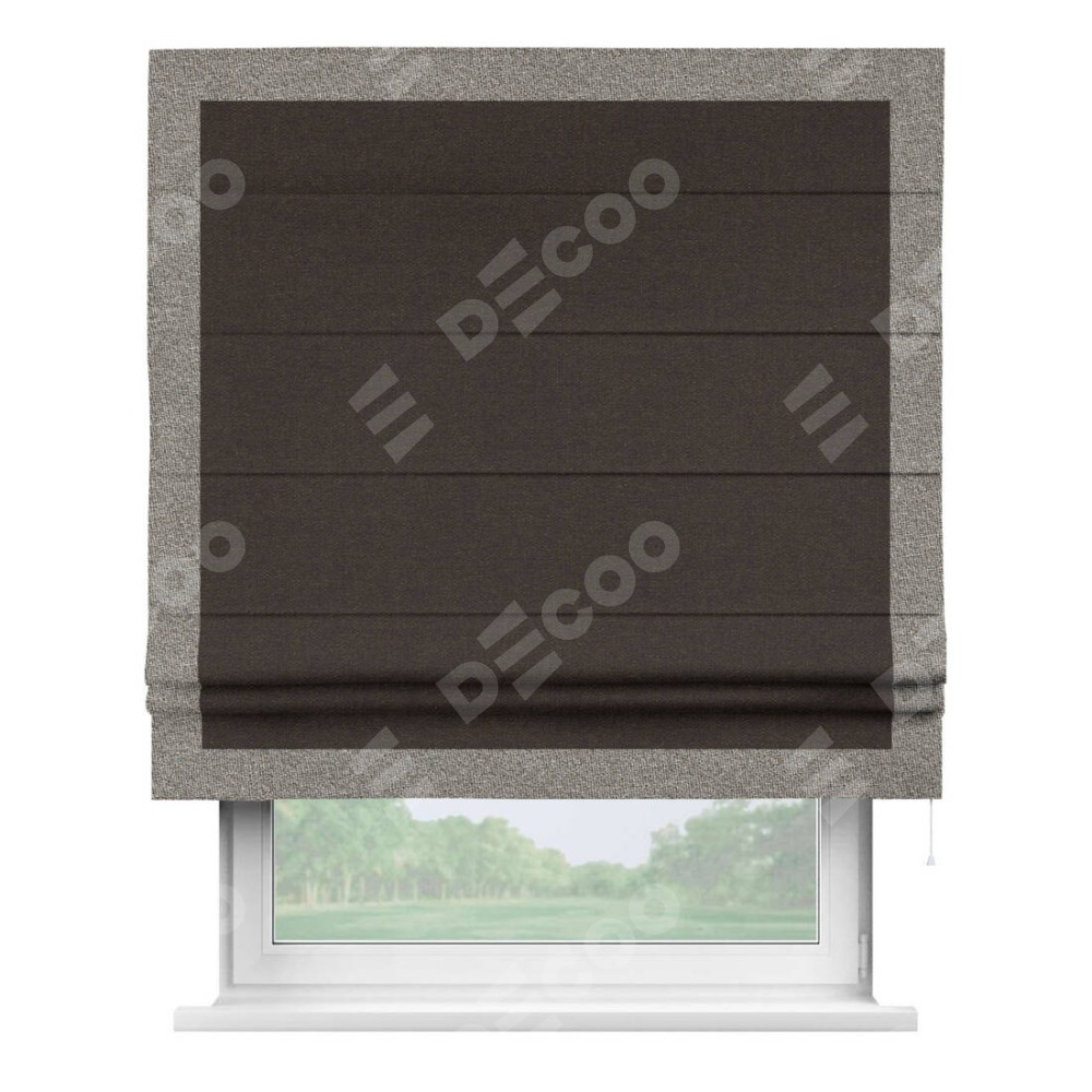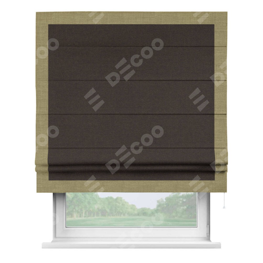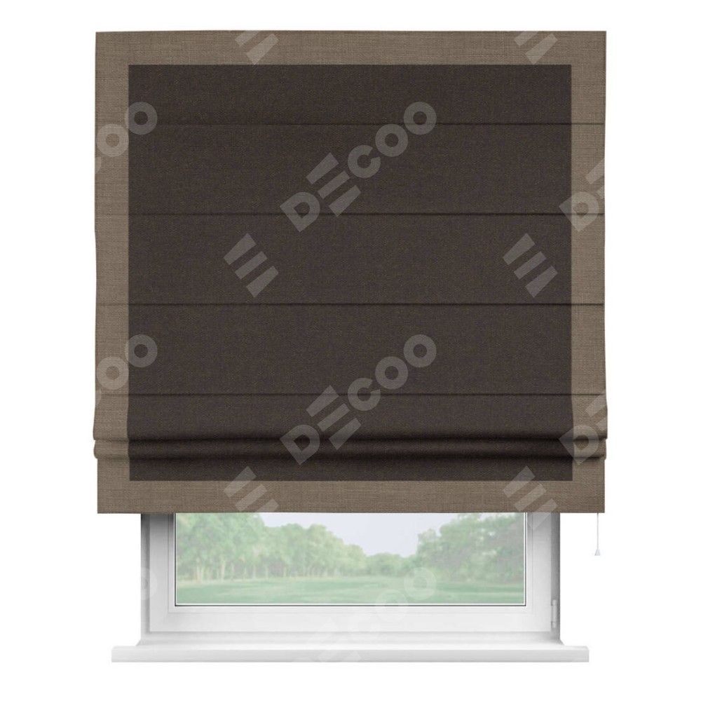 Римская штора «Кортин» для проёма, лён тёмно-коричневый, с кантом Чесс