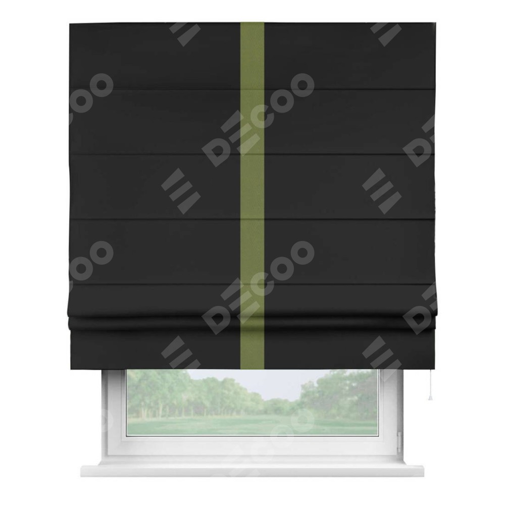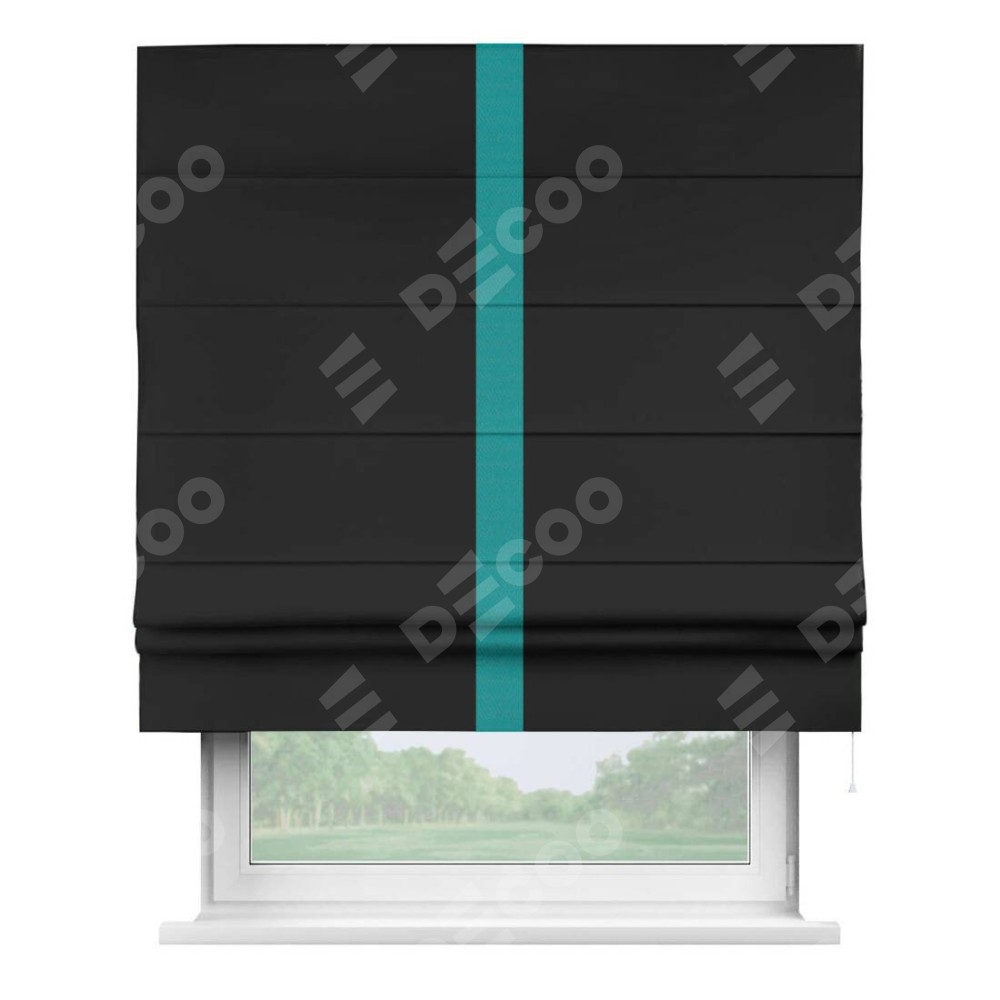 Римская штора «Cortin» для проёма, блэкаут однотонный черный с кантом Хайвэй