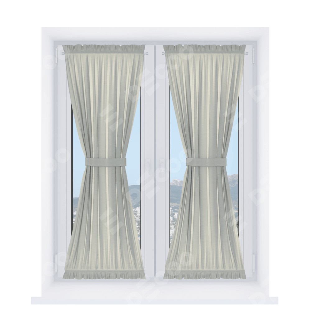 Штора «Песочные часы» производителя «Cortin», используется для створок окон и дверей, пошита из ткани лён димаут светло-серый, артикул ткани 83025.