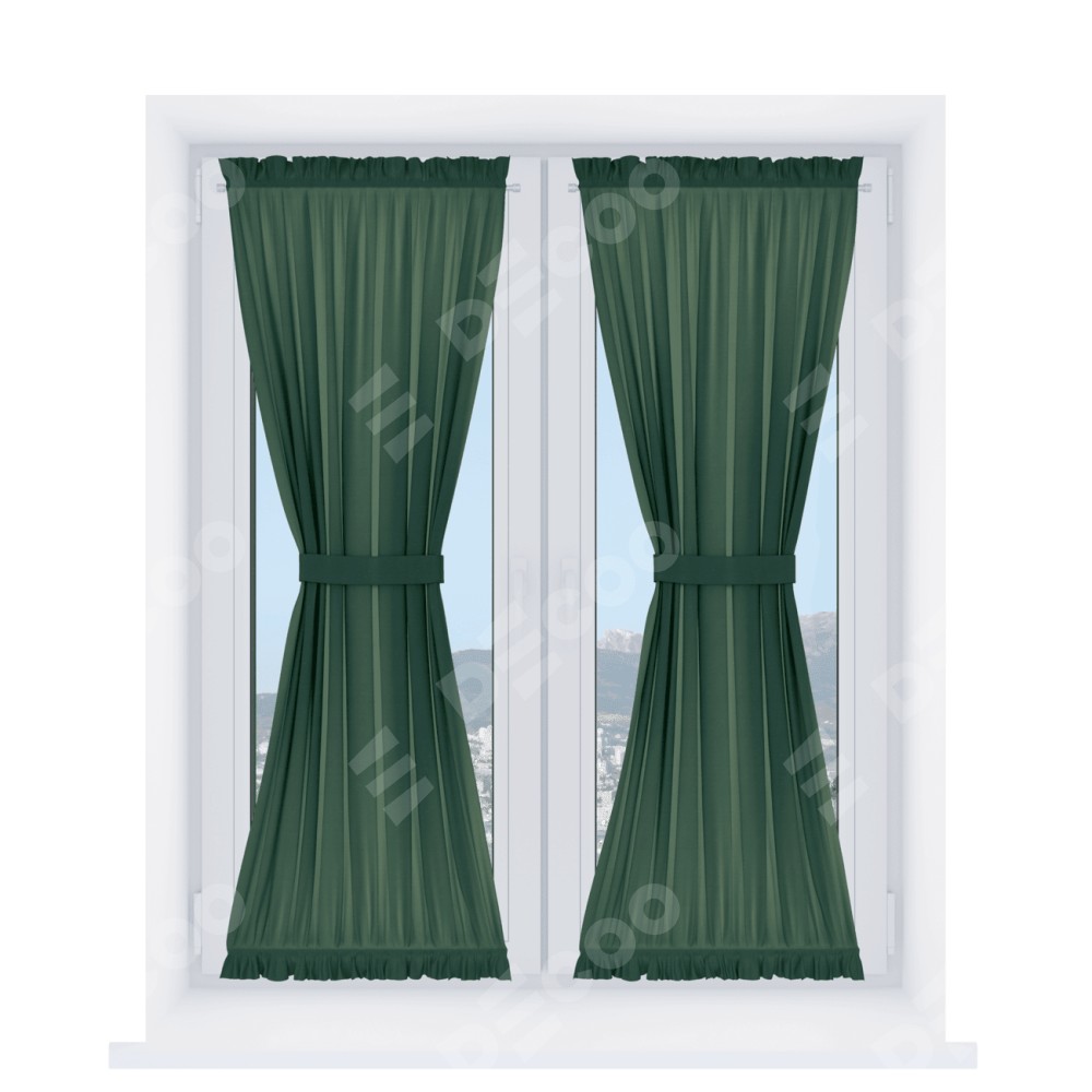 Штора «Песочные часы» производителя «Cortin», используется для створок окон и дверей, пошита из ткани лён димаут тёмно-зелёный, артикул ткани 16246.