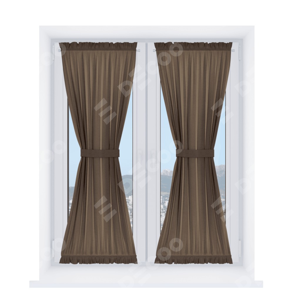 Штора «Песочные часы» производителя «Cortin», используется для створок окон и дверей, пошита из ткани лён димаут тёмно-коричневый, артикул ткани 83030.