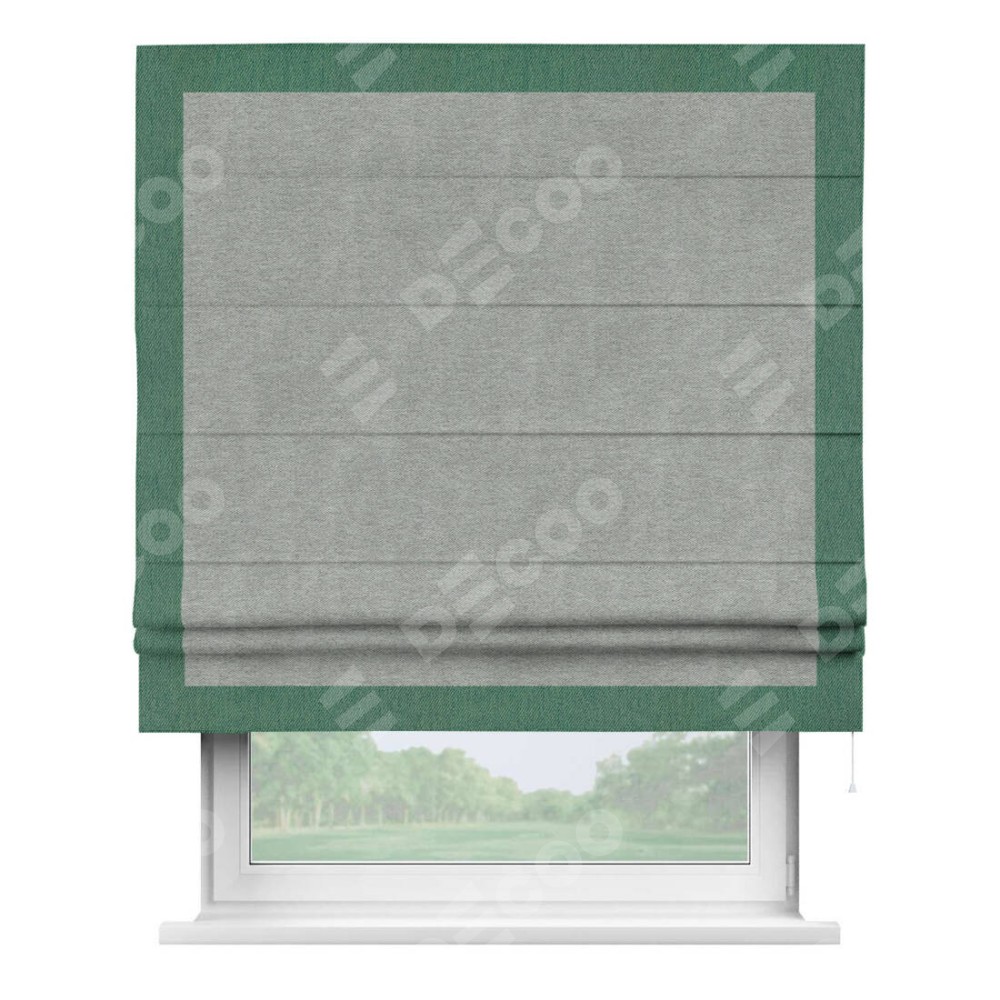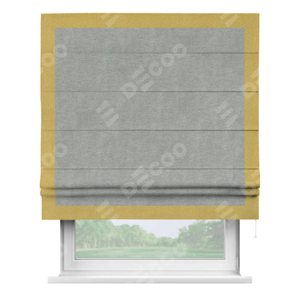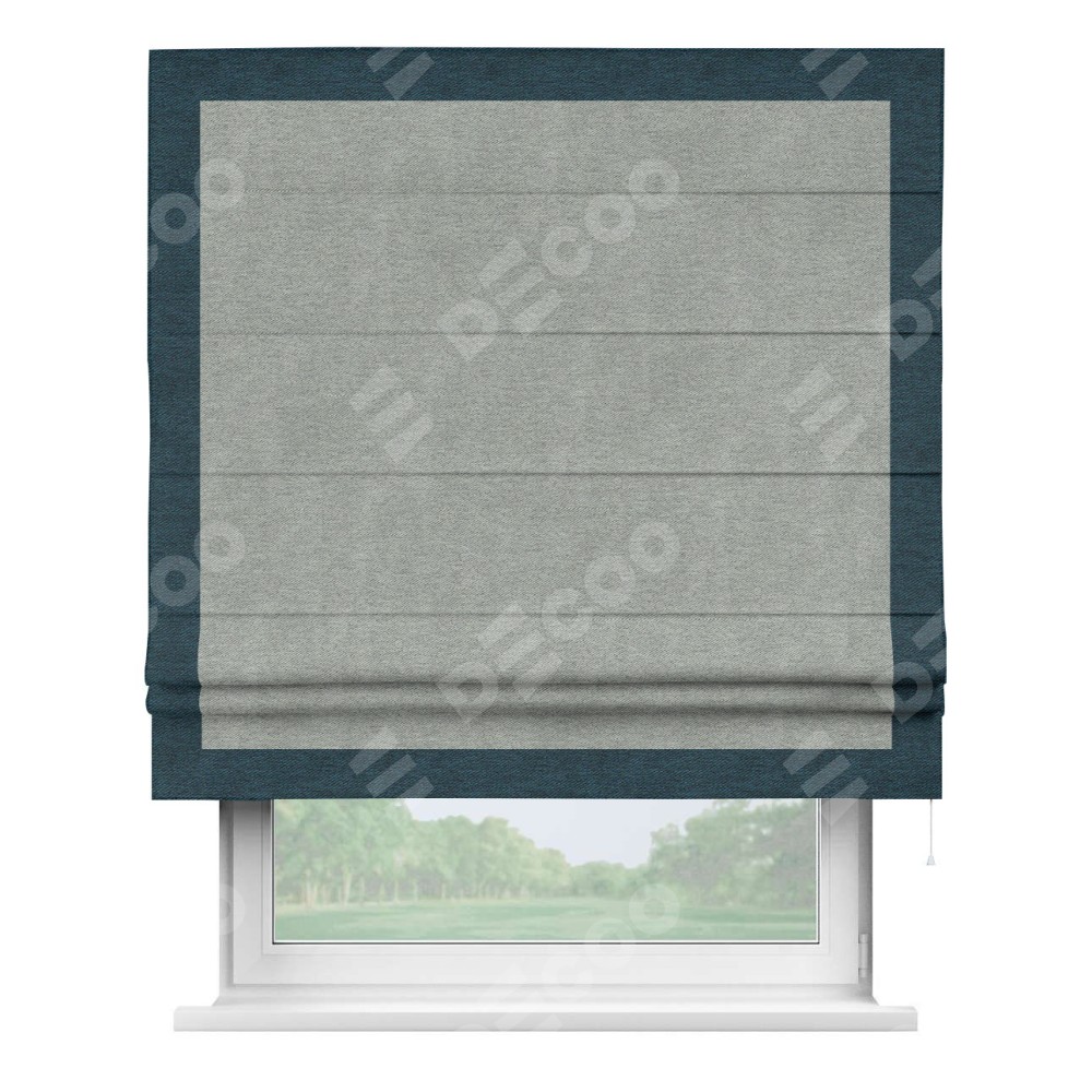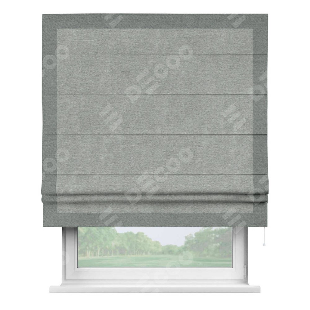Римская штора производителя «Cortin», используется для проёма, пошита из ткани твид блэкаут светло-серый, артикул 21576. Отделка шторы кантом «Чесс», ткань для канта используется из твида разной расцветки на выбор. Имеет универсальный механизм и подходит для монтажа: на потолок, на стену и в нишу.
